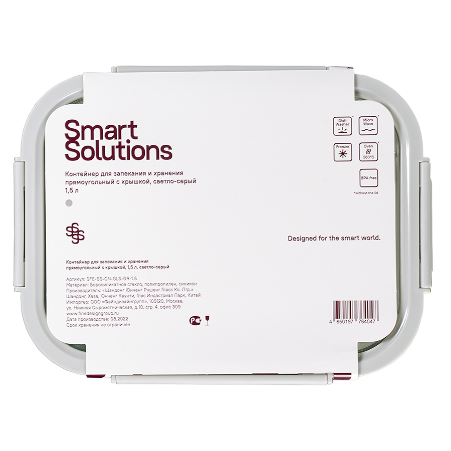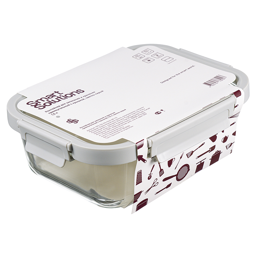 Контейнер для запекания и хранения прямоугольный с крышкой, 1,5 л, светло-серый, Smart Solutions