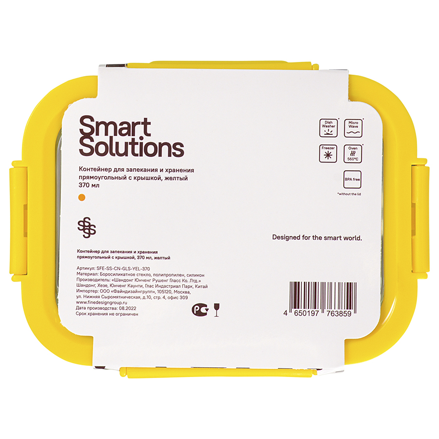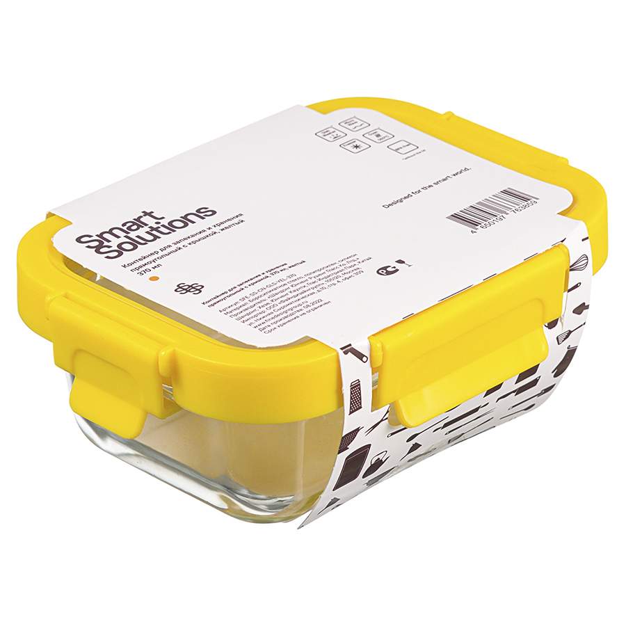 Контейнер для запекания и хранения прямоугольный с крышкой, 370 мл, желтый, Smart Solutions