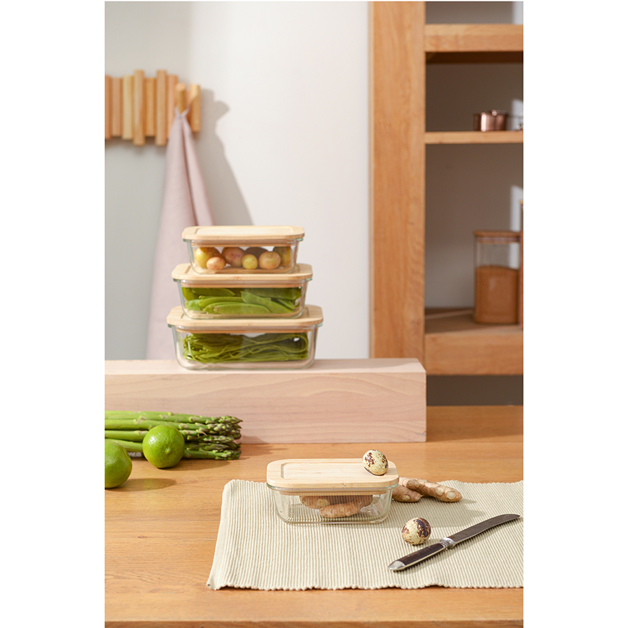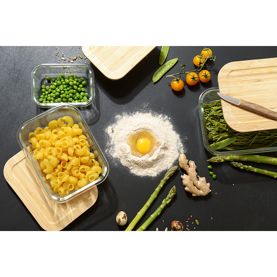 Контейнер с бамбуковой крышкой отлично подойдет для хранения и запекания продуктов, в том числе готовых блюд.