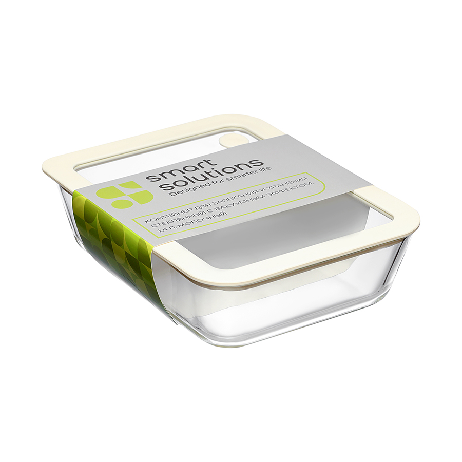 Контейнер для запекания и хранения стеклянный с вакуумным эффектом, 1,4 л, молочный, Smart Solutions