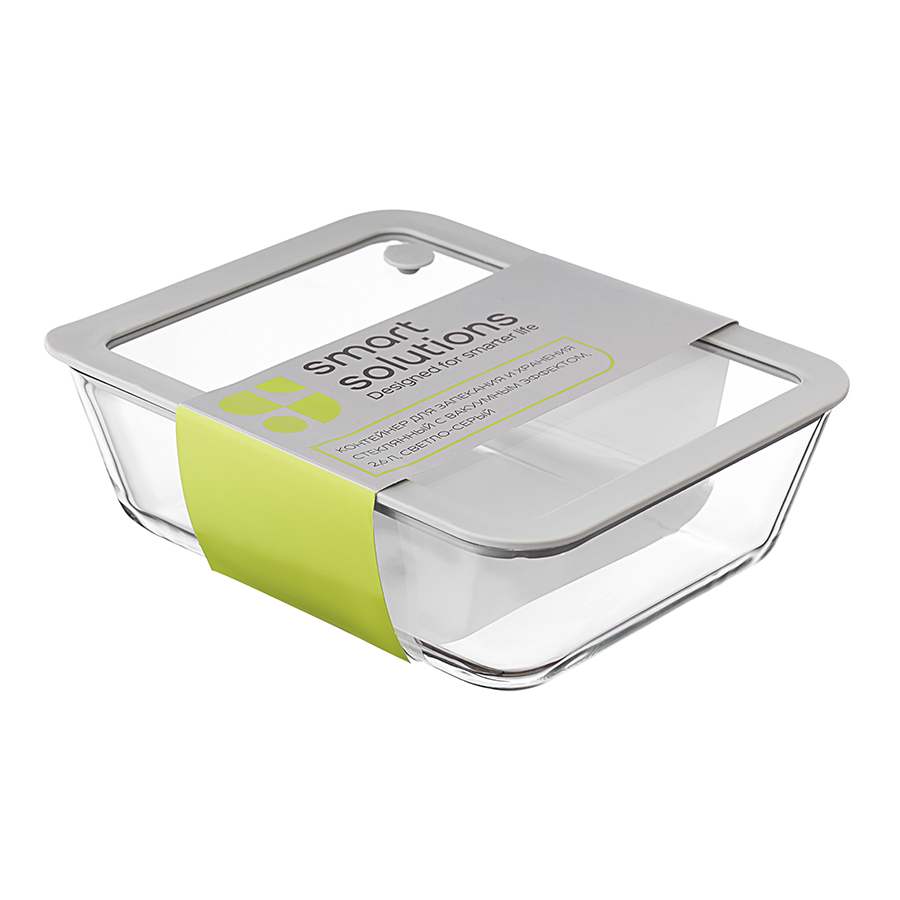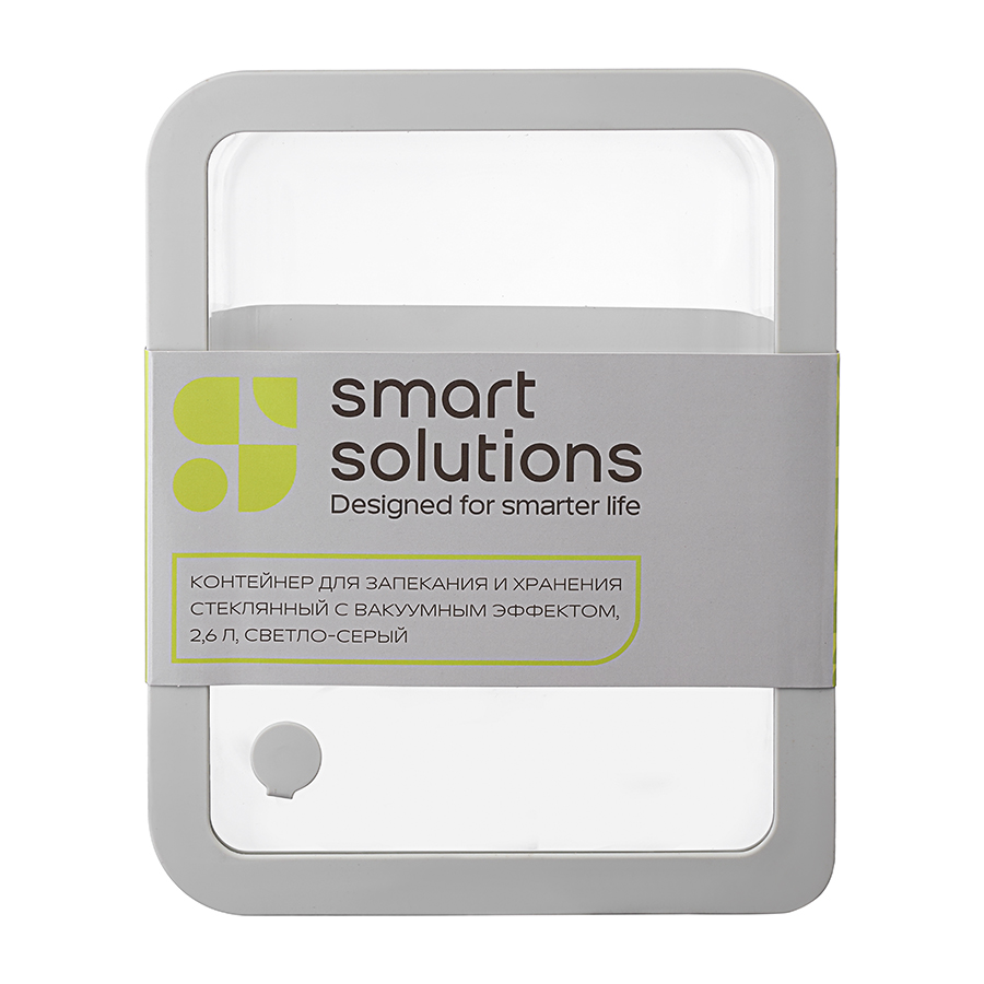 Контейнер для запекания и хранения стеклянный с вакуумным эффектом, 2,6 л, светло-серый, Smart Solutions