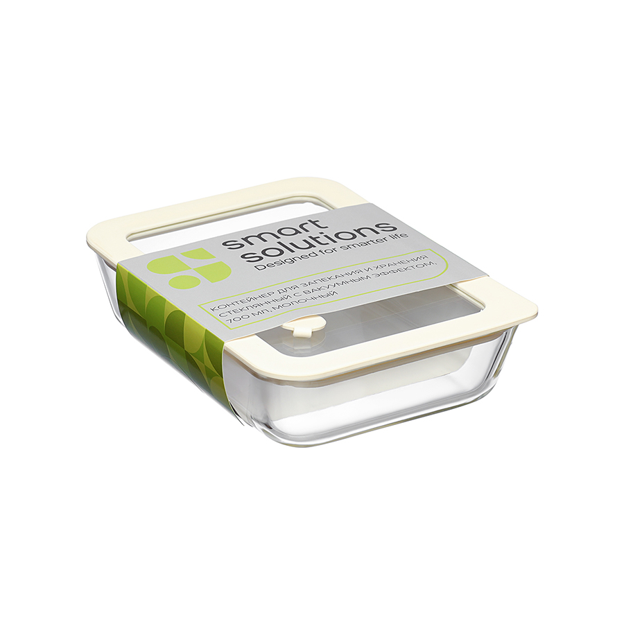 Контейнер для запекания и хранения стеклянный с вакуумным эффектом, 700 мл, молочный, Smart Solutions