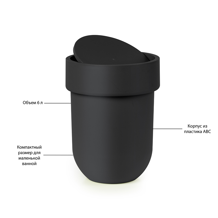 Контейнер мусорный Touch с крышкой черный, Umbra