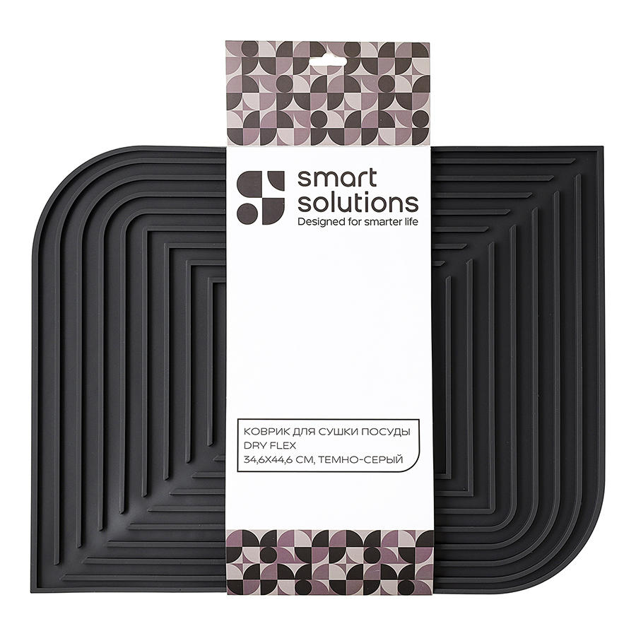 Коврик для сушки посуды Dry Flex, 34,6х44,6 см, темно-серый, Smart Solutions