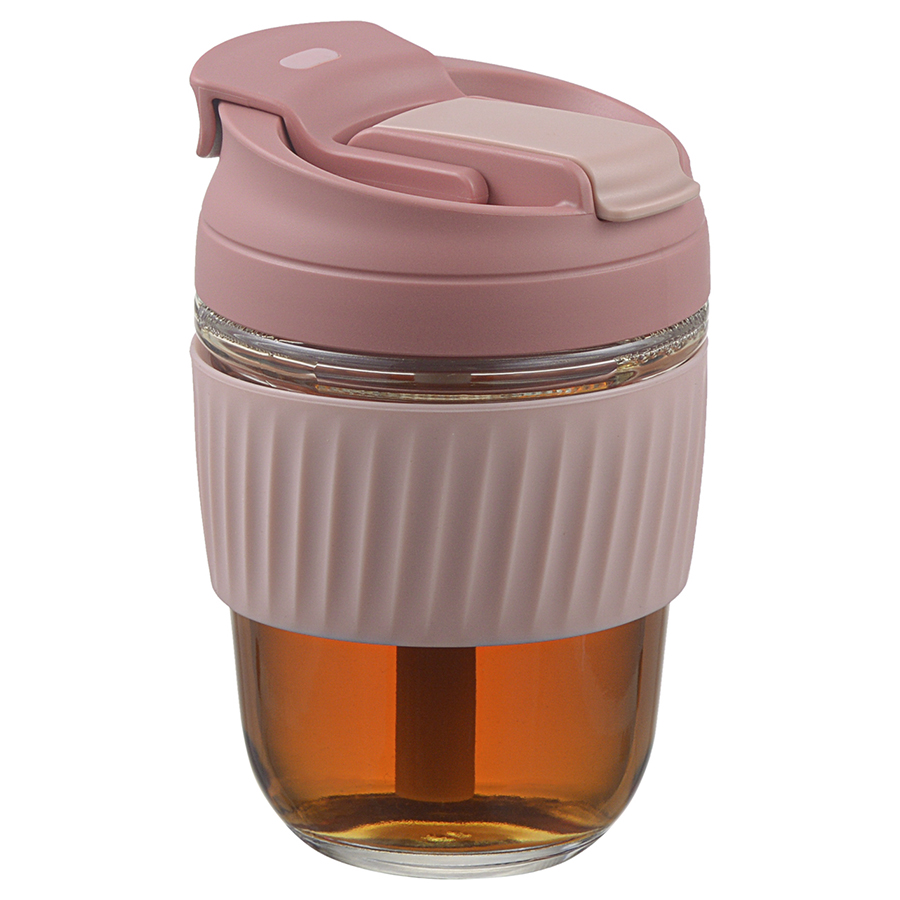 Материалы: стекло, силикон, пластик. Объем: 360 мл. Цвет крышки: розовый.