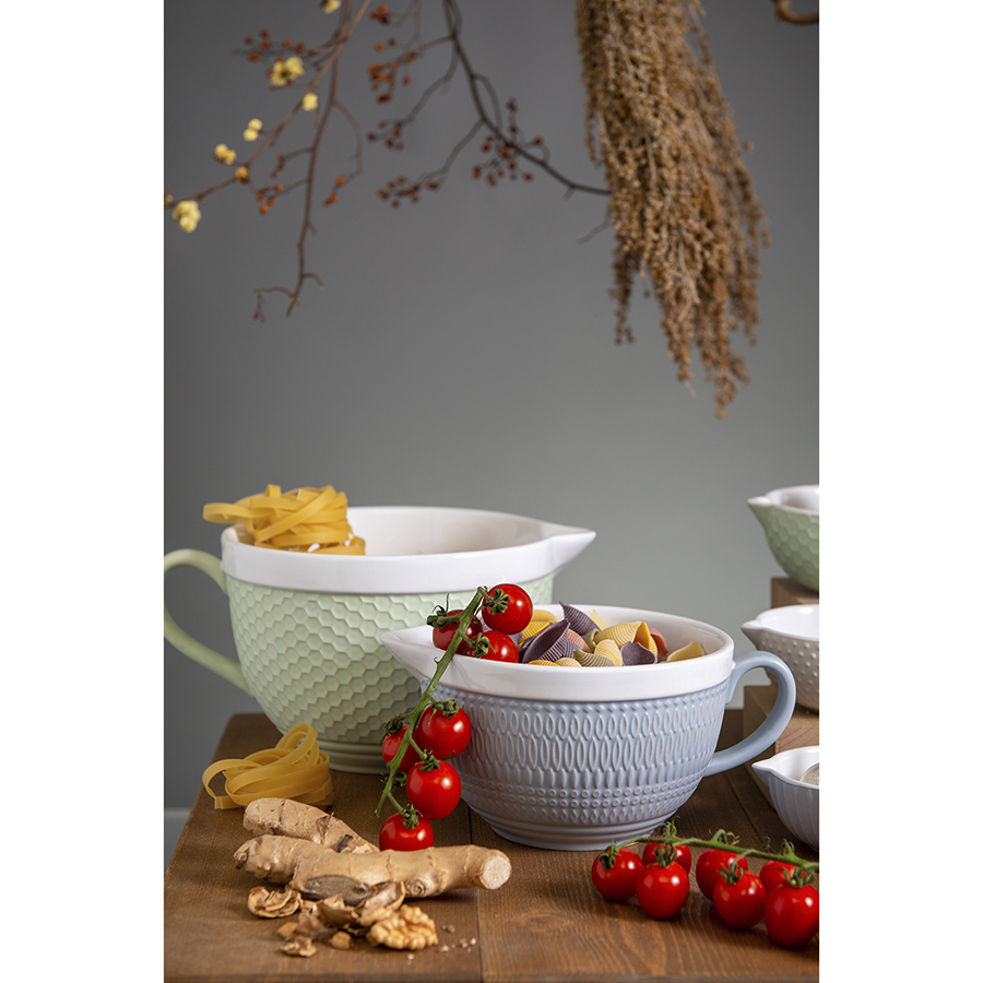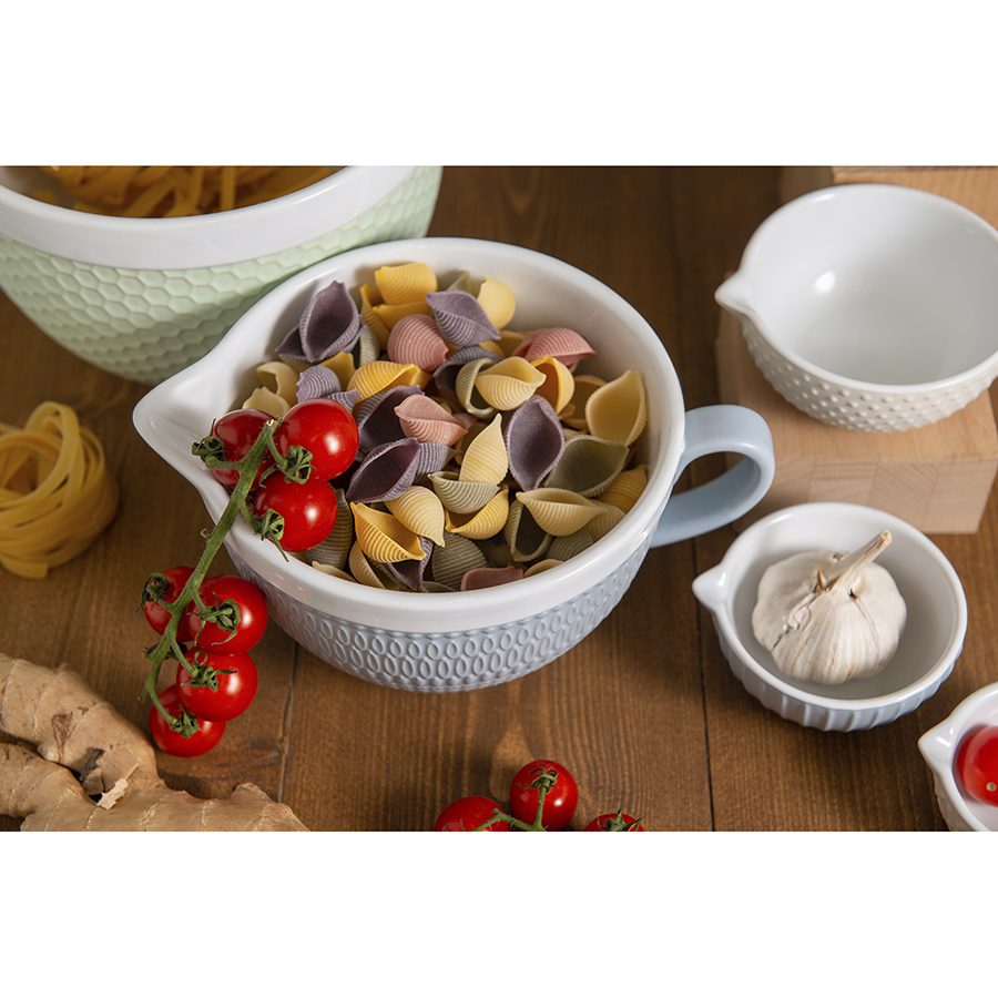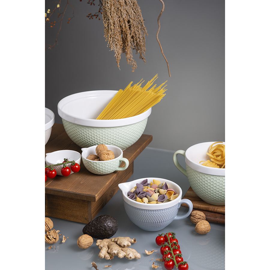 Кувшин Marshmallow представляет собой изделие из каменной керамики – экологичного и устойчивого к износу материала. Поверхность посуды украшает рельефный узор, который смягчает строгие формы и придает дизайну нотки легкости и элегантности. Емкость идеально подходит для смешивания ингредиентов, приготовления соусов и крема.