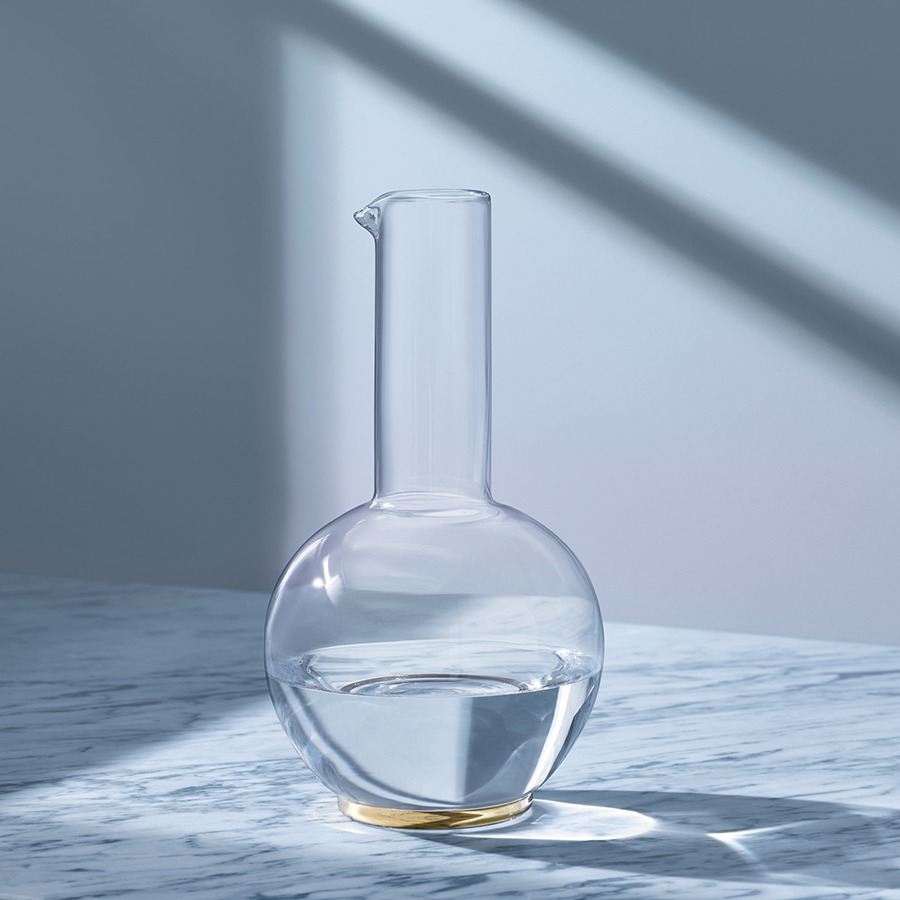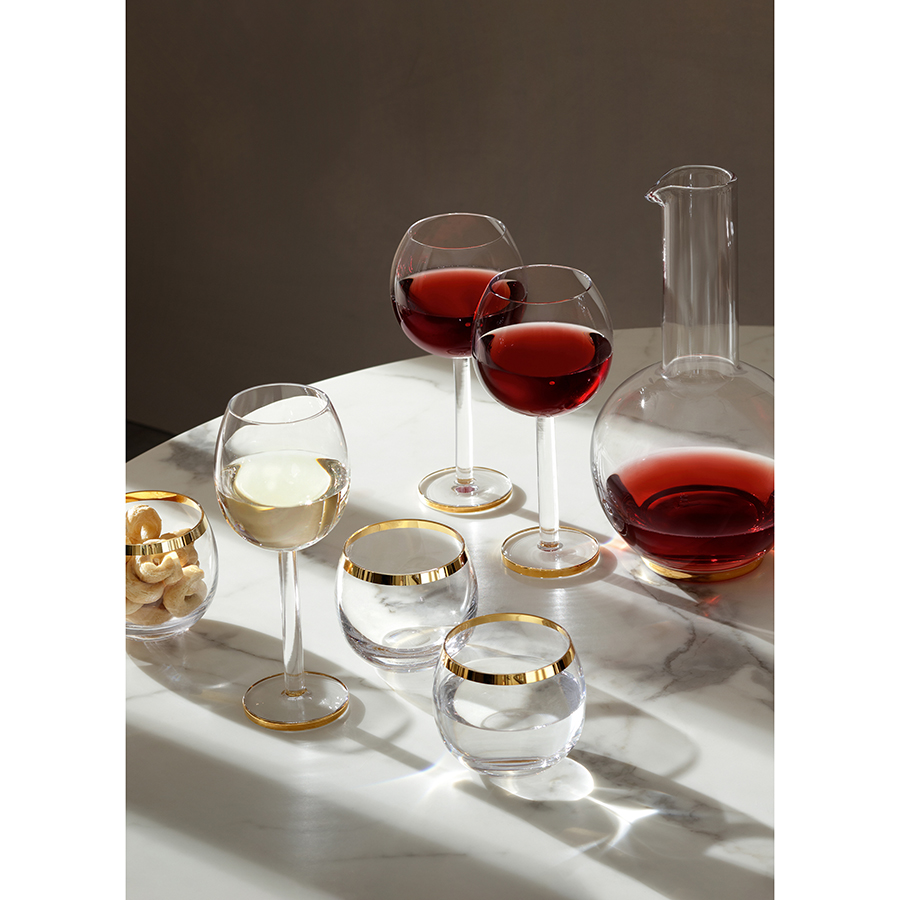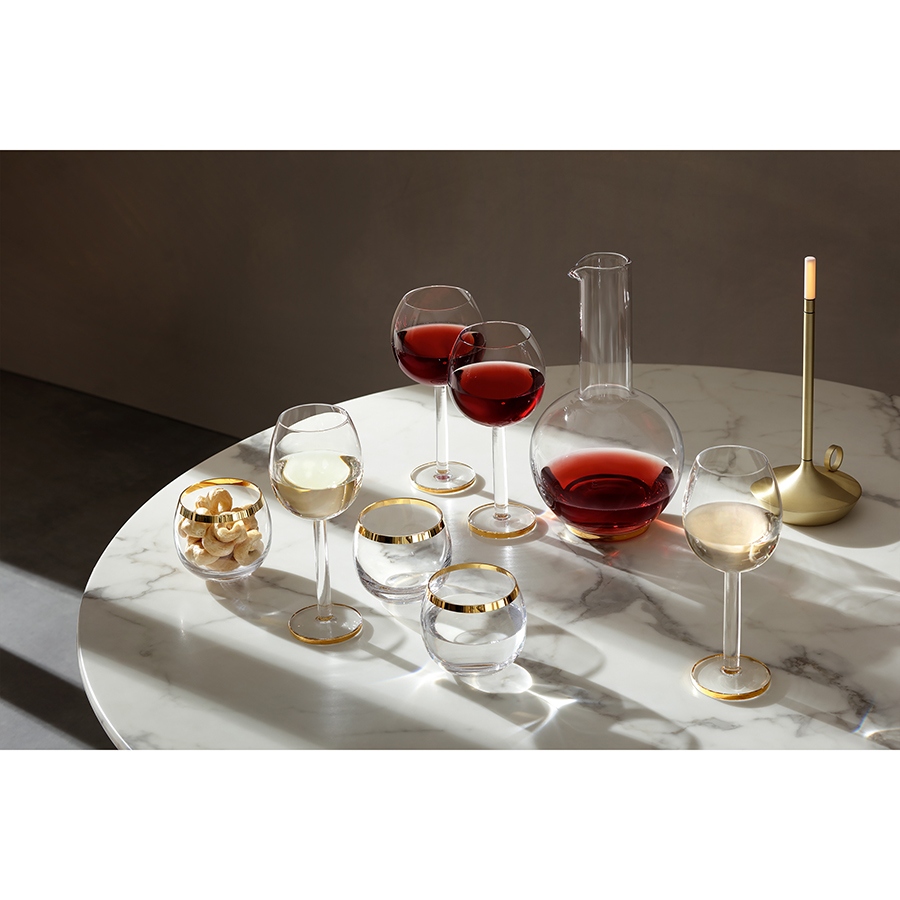 Кувшин в современном дизайне со стильными золотистым ободком украсит стол и прекрасно подойдет для подачи воды или вина.