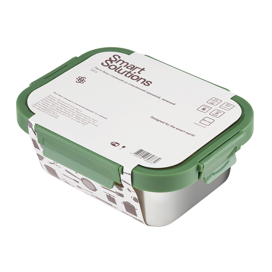 Ланч-бокс стальной со стеклянной крышкой, 1,2 л, зеленый, Smart Solutions
