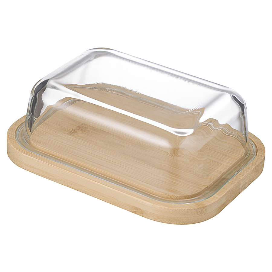 Материал: боросиликатное стекло, бамбук. Размеры масленки: 18х14х6 см. Размеры стеклянной крышки: 13,5х9х4 см. Объем: 640 мл.