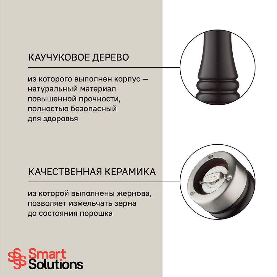 Мельница для перца Smart Solutions, 15 см, коричневая матовая, Smart Solutions