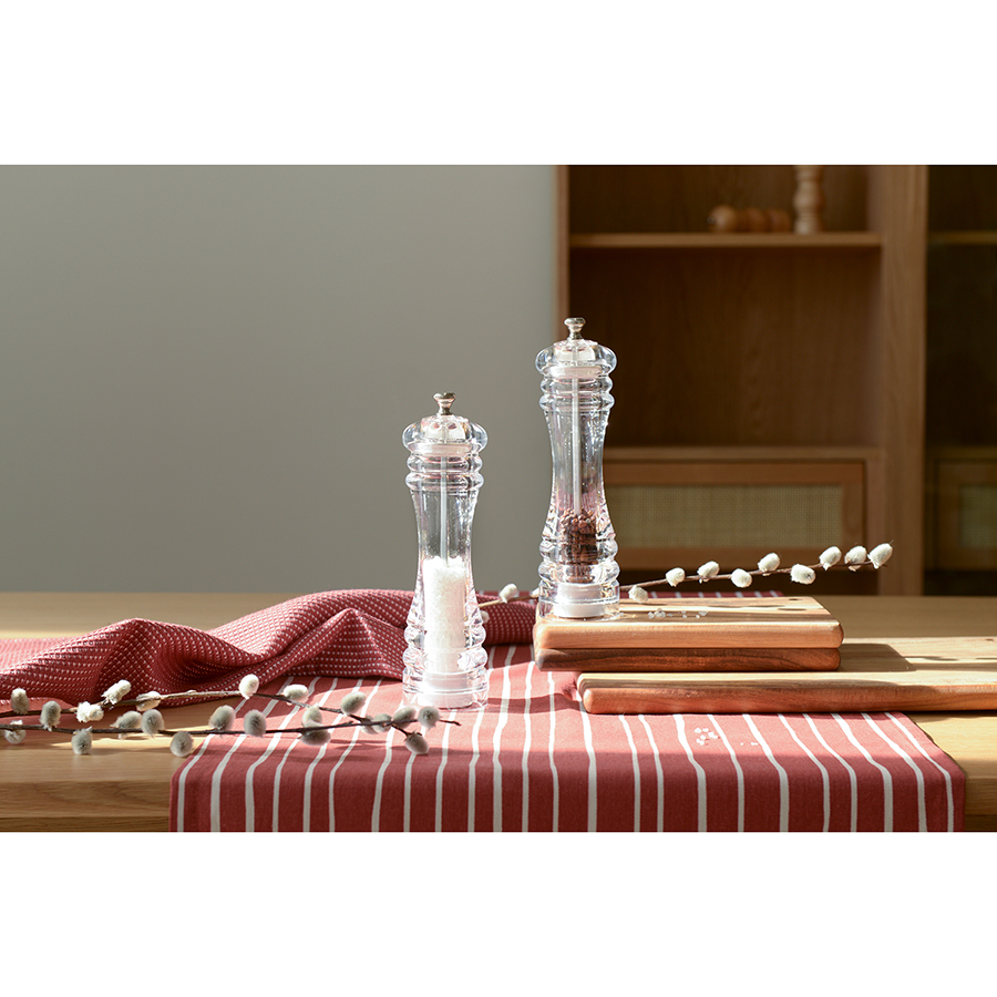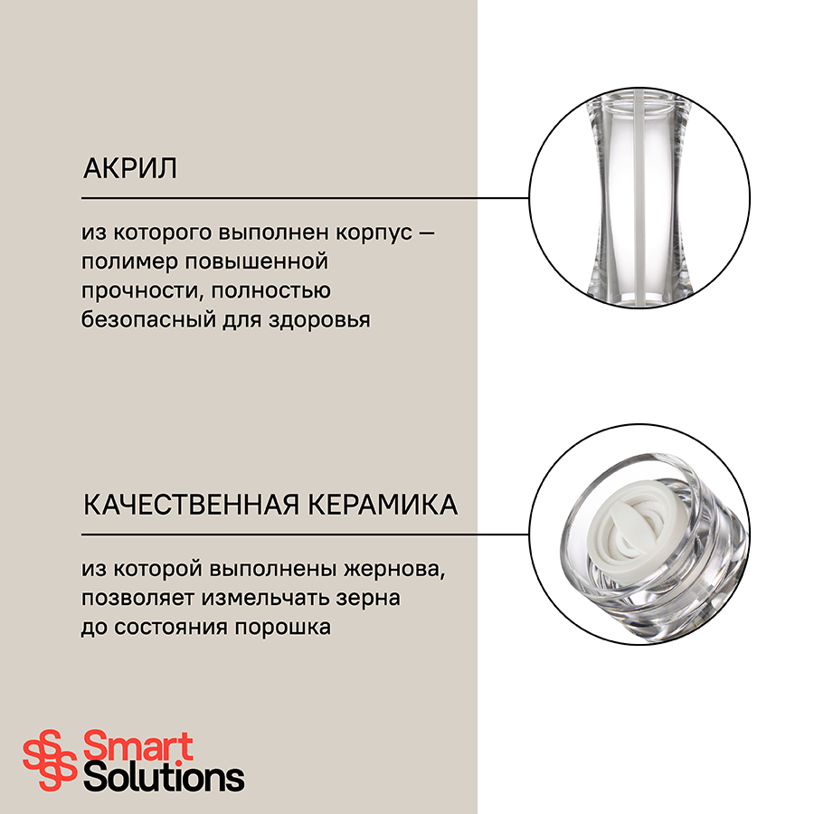 Корпус выполнен из акрила – полимера повышенной прочности, который полностью безопасен для здоровья. Износостойкие жернова из качественной керамики хорошо измельчают зерна до состояния порошка. Корпус эргономичной формы удобно ложится в руку. Механизм для мельниц производится на заводе Holar, известном высокими технологиями с 1966 года.