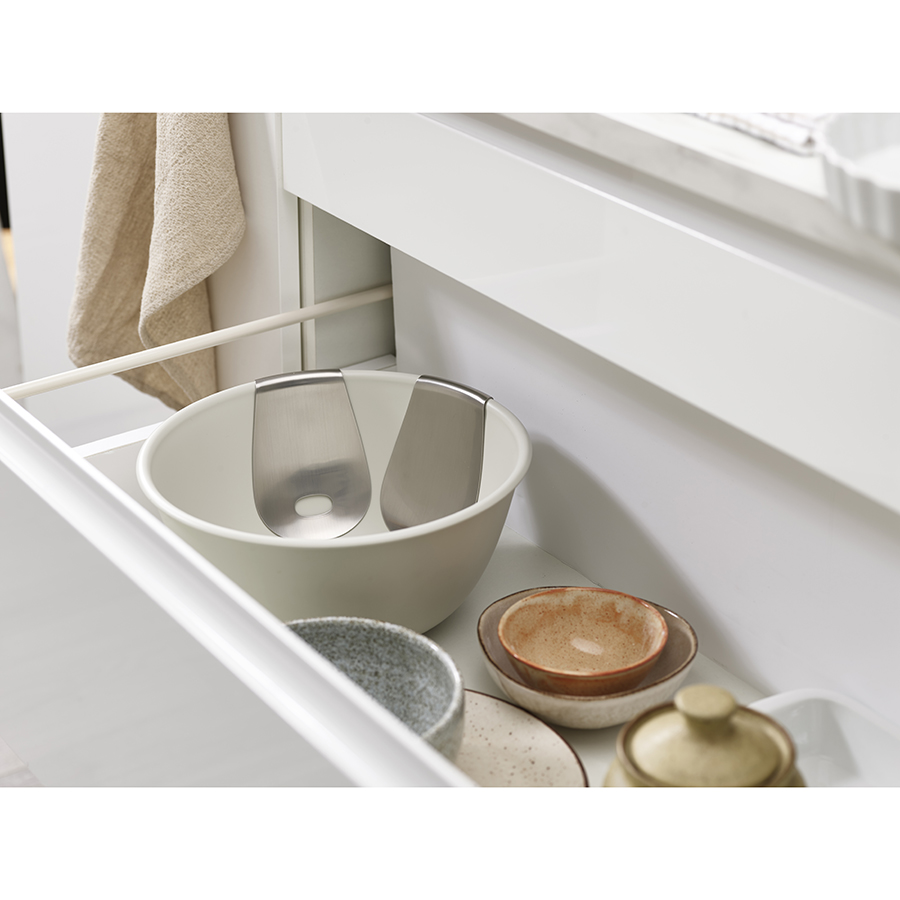 Компактные приборы удобно хранить прикрепленными к бортику чаши. Приборы изготовлены из нержавеющей стали 18/8. Материал не содержит Бисфенол-А.