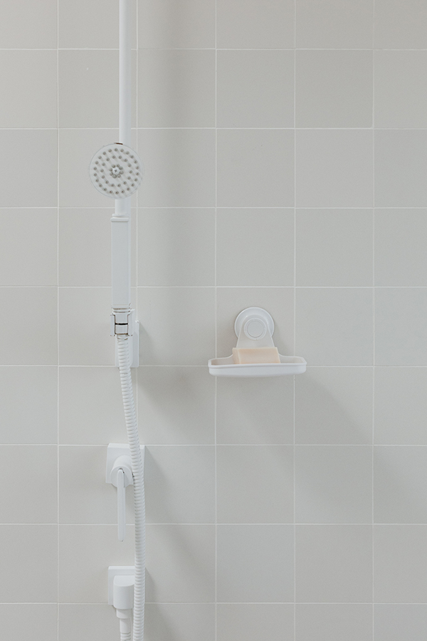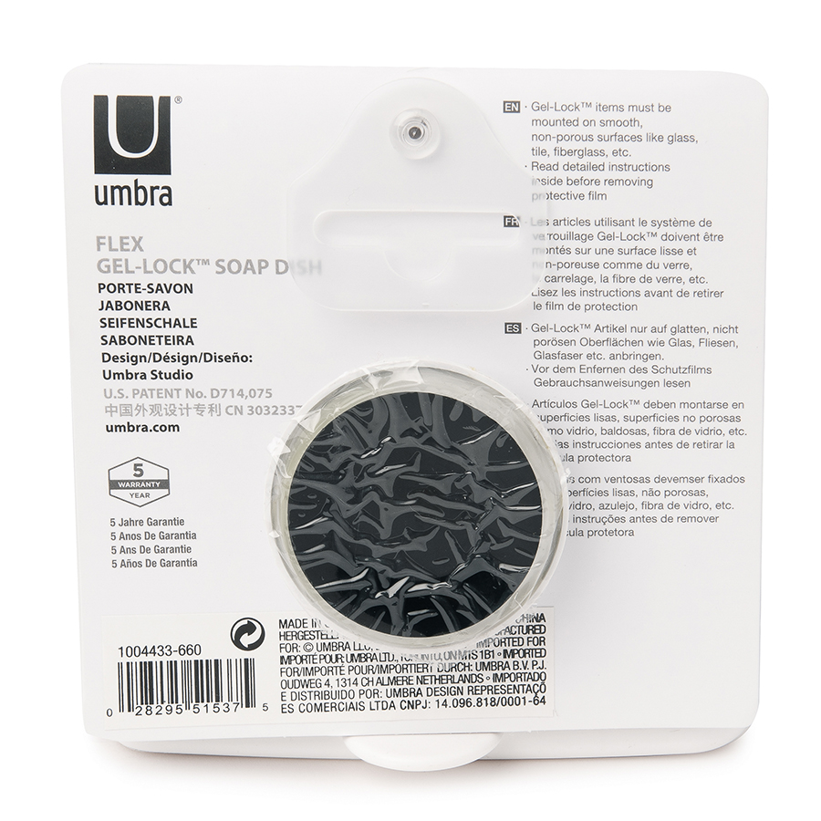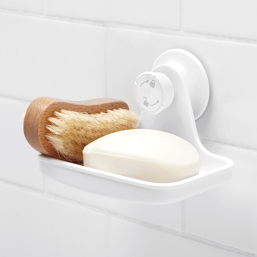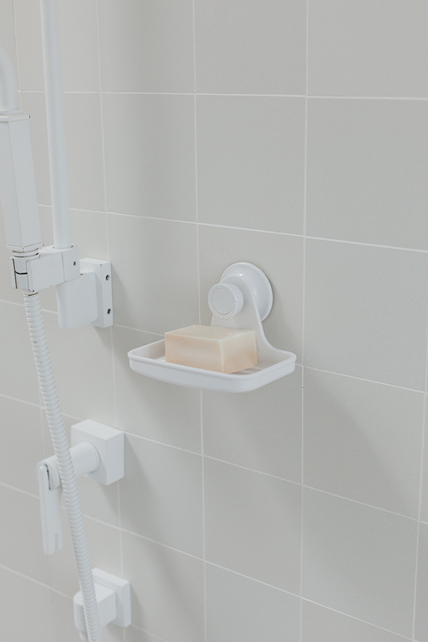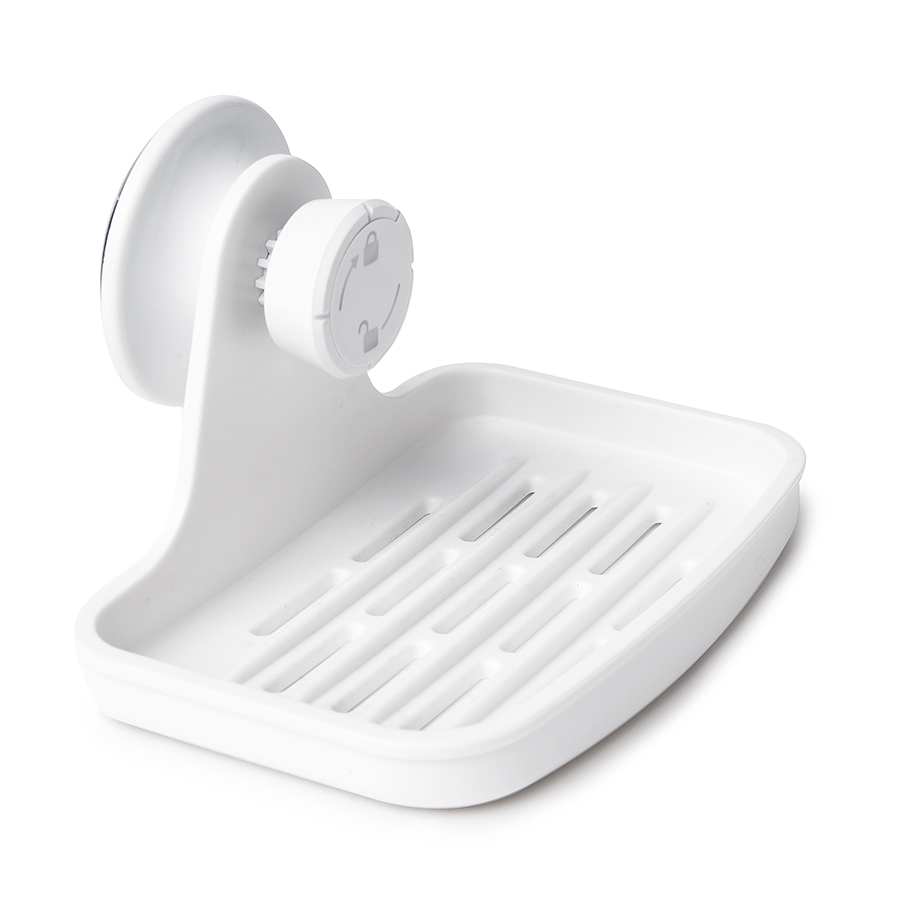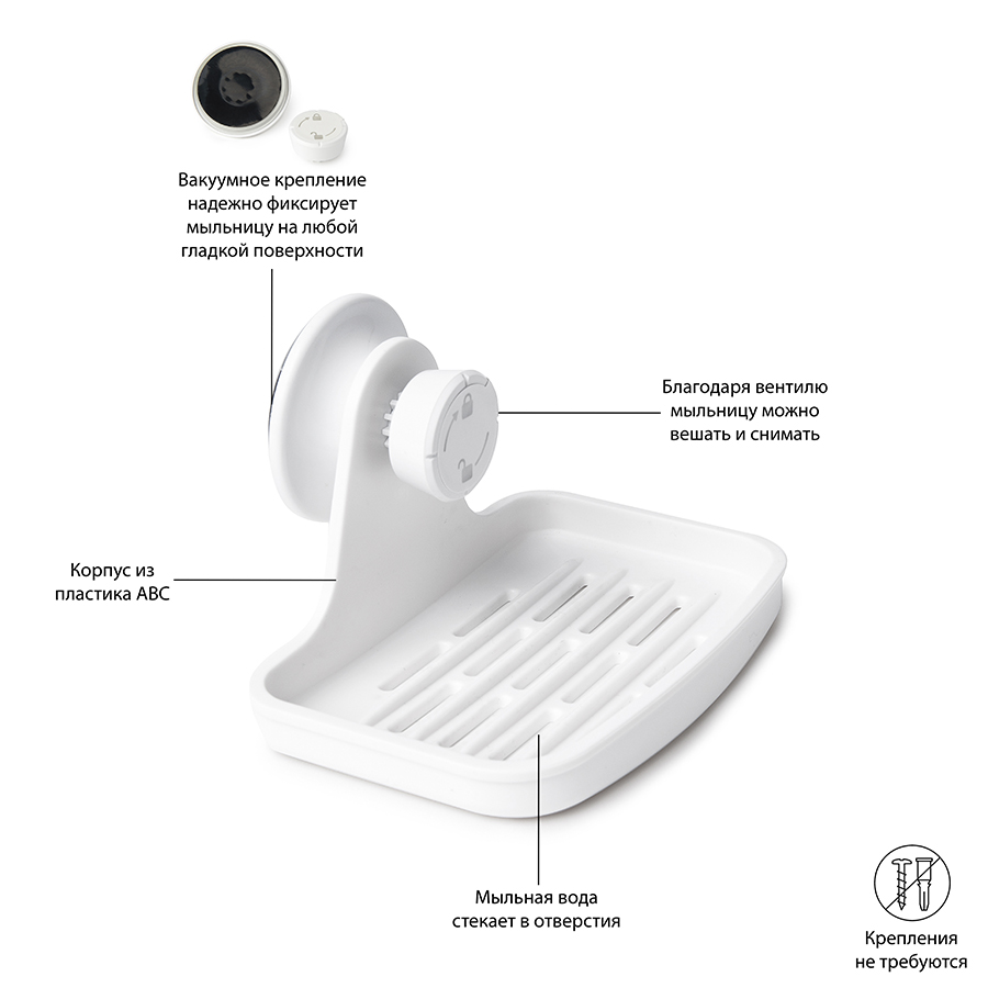 Корпус выполнен из прочного пластика ABS. Крепится к стене на присоску с запатентованной технологией Gel-Lock™. Крепление прочно держится на плитке, стекле и других гладких поверхностях. Отверстия в полочке не дадут воде застаиваться.