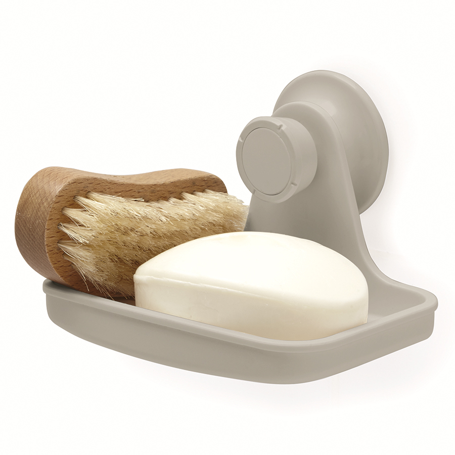 Корпус выполнен из прочного пластика ABS. Крепится к стене на присоску с запатентованной технологией Gel-Lock™. Крепление прочно держится на плитке, стекле и других гладких поверхностях. Отверстия в полочке не дадут воде застаиваться.