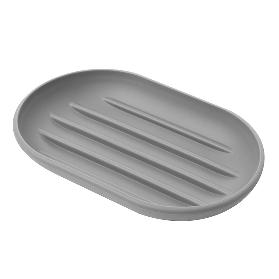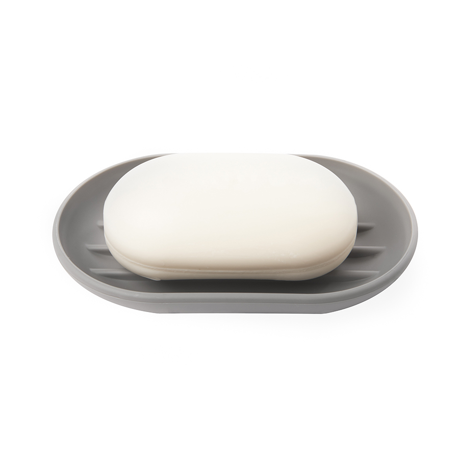 Мыльница, изготовленная из приятного на ощупь пластика, не скользит, а брать из ее мыло удобнее благодаря специальным желобкам на донышке.