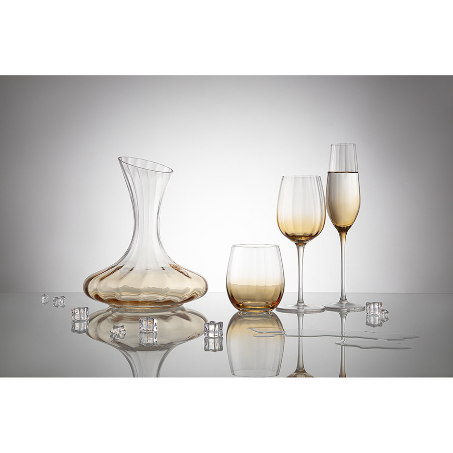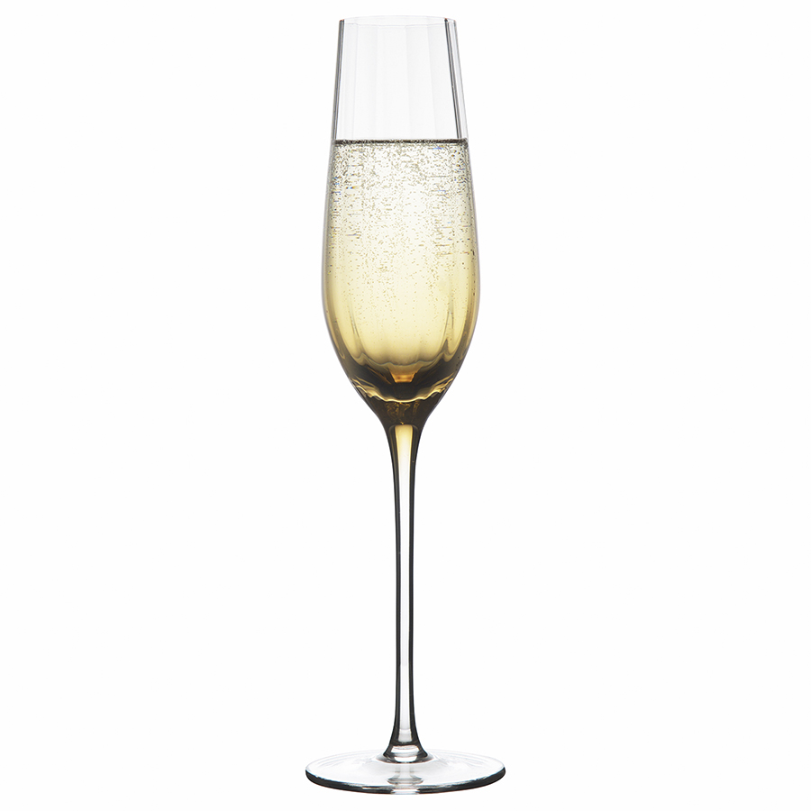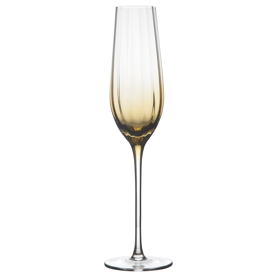Бокалы для шампанского Gemma Amber специальной вытянутой формы позволят дольше любоваться стройными рядами пузырьков и раскроют все тонкости вкуса и аромата игристого напитка. Узкое горло минимизирует соприкосновение жидкости с воздухом, что обеспечивает более медленное испарение углекислоты. Удлиненная ножка делает силуэт утонченным и не дает вину нагреваться от тепла руки. Материал, из которого выполнены изделия, долговечный, не требует сложного ухода. Комбинируйте предметы из одноименной линейки – декантер, бокалы, стаканы для воды, чтобы создать завершенную композицию и удивить гостей изысканной сервировкой.