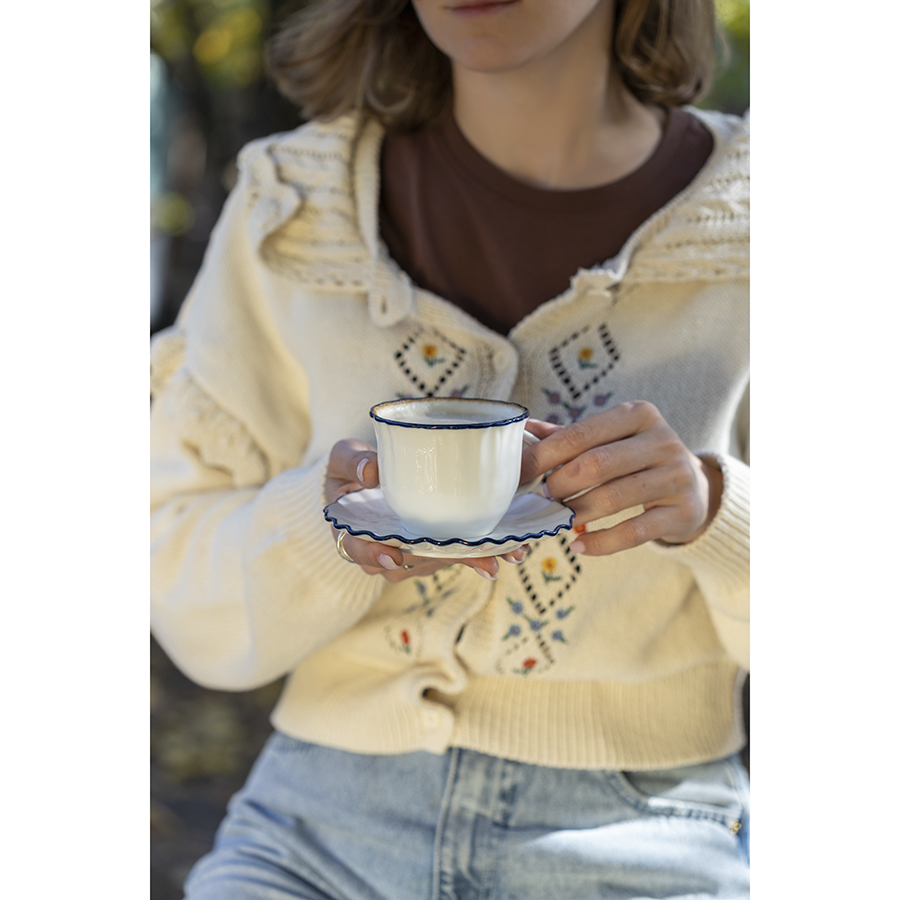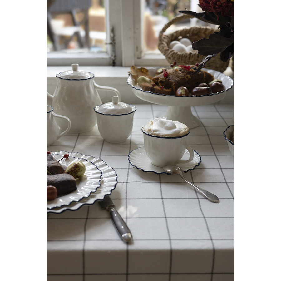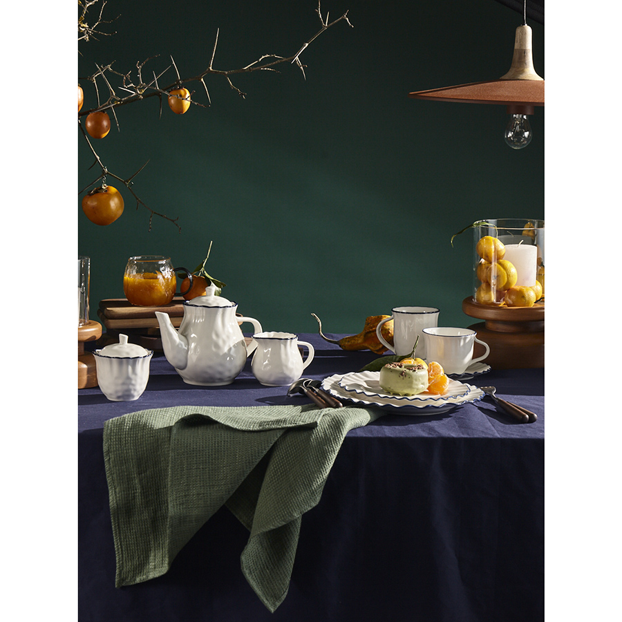Коллекция Santorini великолепно передает атмосферу уединенного греческого острова, известного своими завораживающими видами и удивительной архитектурой. Оттенки белого и синего напоминают о бескрайнем море и уютных домиках на скалах, а необычная “мятая” фактура фарфора ассоциируется с каменистыми склонами и живописными утесами.