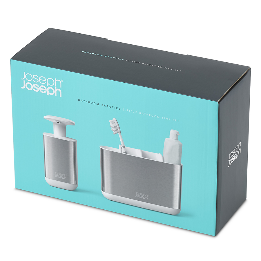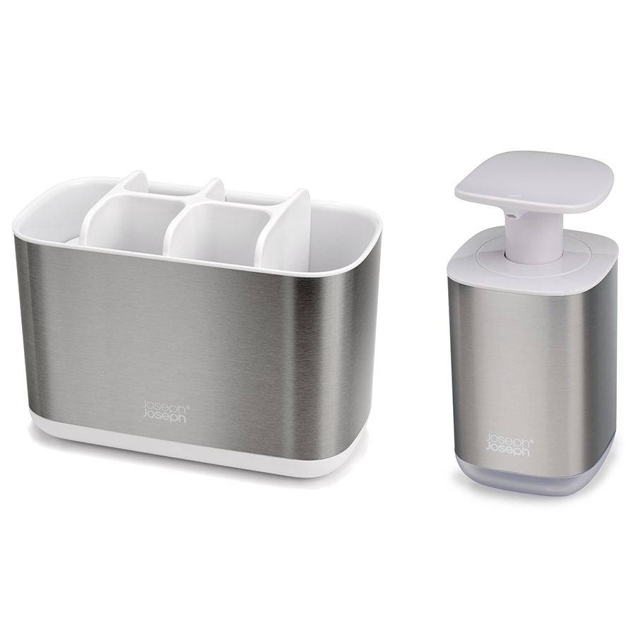 Набор из органайзера для зубных щеток EasyStore Steel и диспенсера для мыла Presto Steel, Joseph Joseph