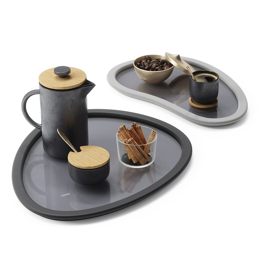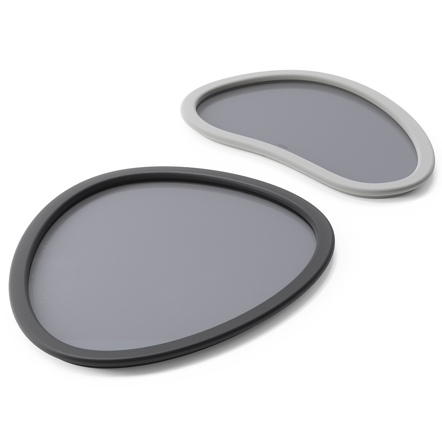 Подносы уникальной формы Hub помогут осуществить эффектную подачу блюд и станут украшением любой сервировки. Отделка из тонированного стекла делает дизайн интересным, а резиновый ободок обеспечивает изделиям дополнительную прочность и облегчает переноску посуды. Подносы также можно использовать в декоративных целях – размещать на них свечи, ароматизаторы для дома и любые другие предметы.