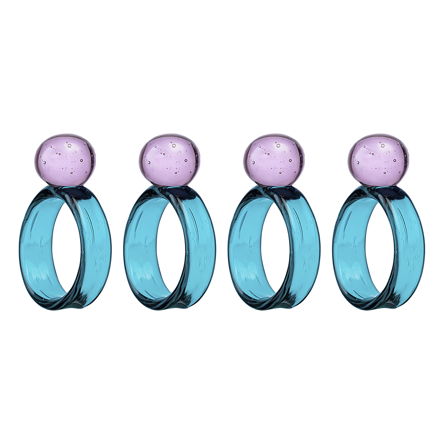 Набор из 4 колец для салфеток Orb, ?4 см, бирюзовые/розовые, Liberty Jones