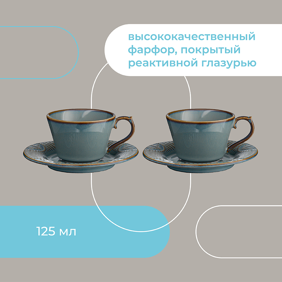 Материал: фарфор. Объем: 125 мл. Количество предметов в наборе: 2 шт.