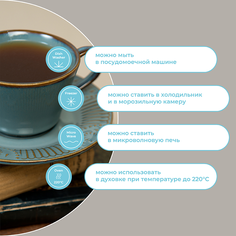Посуду рекомендуется очищать от загрязнений в теплой воде с помощью мягкой губки с жидким средством. Допускается мытье в посудомоечной машине, использование в морозильной камере, микроволновой печи и духовке при температуре не выше 180 °C.