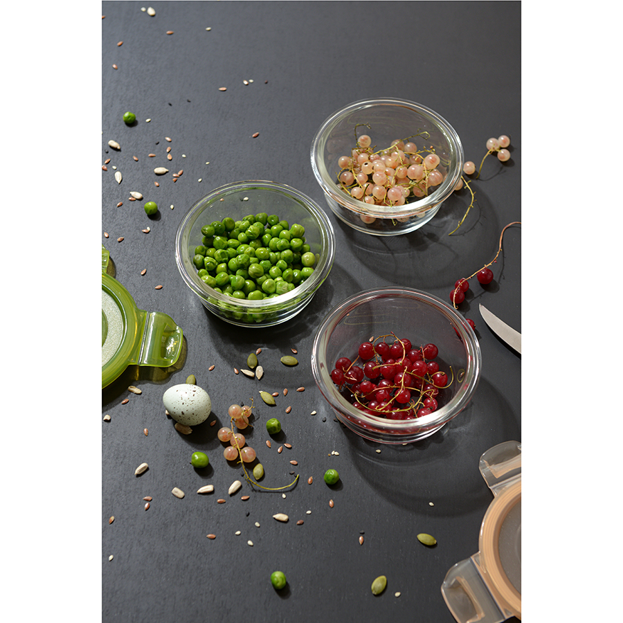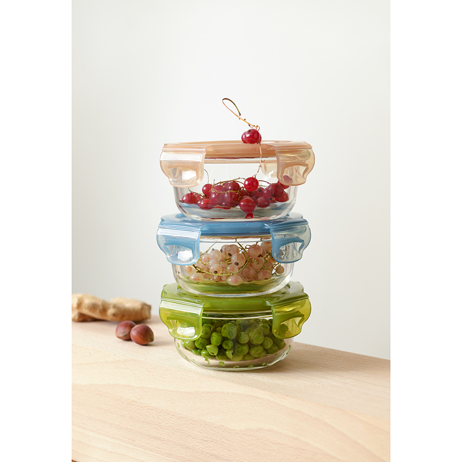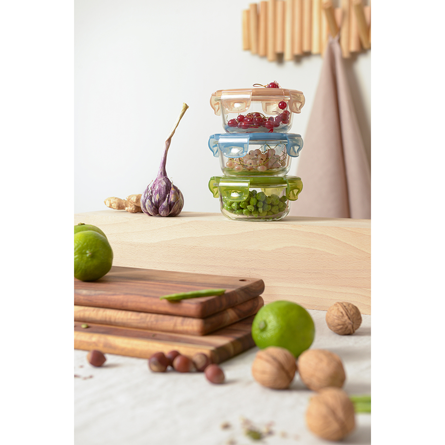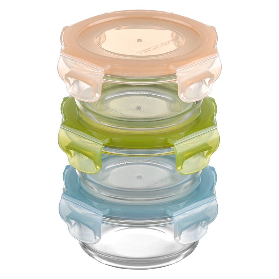 В набор входят 3 контейнера по 210 мл. Контейнеры выполнены из прочного боросиликатного стекла. Пластиковые крышки снабжены надежными закрывающимися механизмами, которые гарантируют 100%, герметичность. Материалы не содержат токсинов и бисфенола-А.