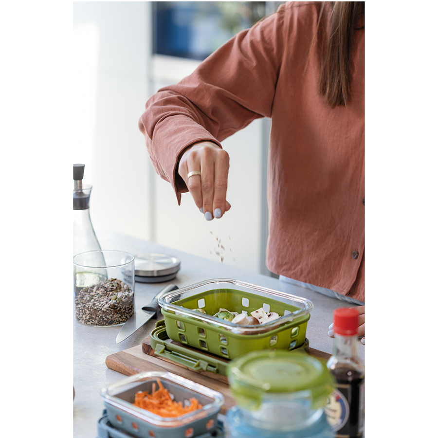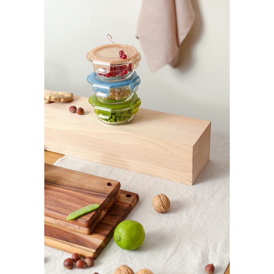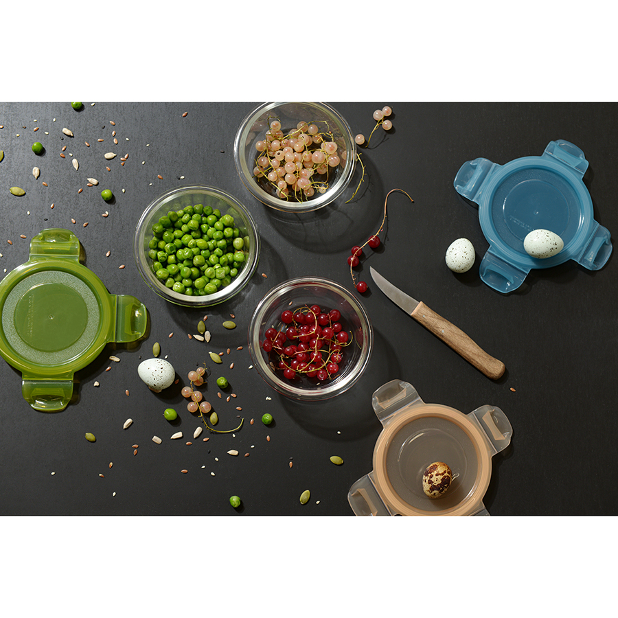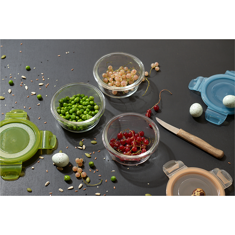 В набор входят 3 контейнера по 210 мл. Контейнеры выполнены из прочного боросиликатного стекла. Пластиковые крышки снабжены надежными закрывающимися механизмами, которые гарантируют 100%, герметичность. Материалы не содержат токсинов и бисфенола-А.