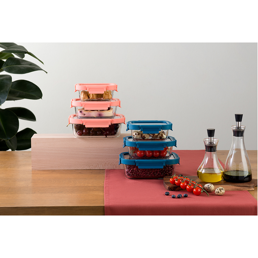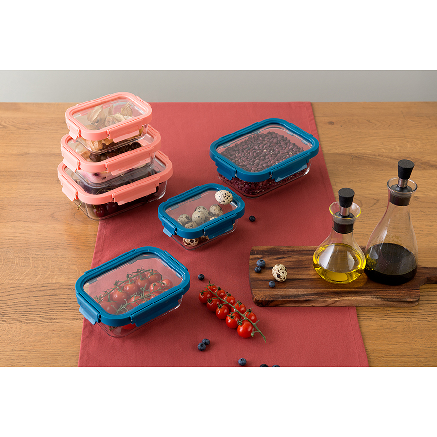 Контейнеры выполнены из прочного боросиликатного стекла. Стеклянные крышки снабжены надежными закрывающимися механизмами, которые гарантируют 100%, герметичность. Материалы не содержат токсинов и бисфенола-А.