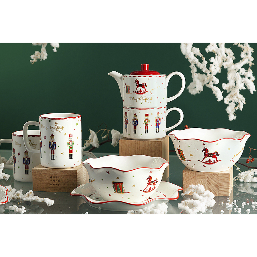 Кружки из новогодней коллекции Magic Moments станут настоящим украшением повседневной и праздничной сервировки. Сказочный принт добавит в любое оформление нотки волшебства, поможет создать за столом теплую и уютную атмосферу. Посуда изготовлена из фарфора – качественного и экологически чистого материала, обеспечивающего долговечность и удобство эксплуатации. Кружки большого объема позволят в полной мере насладиться любимым напитком, подойдут для чая, какао, компота и др. Набор станет отличным подарком к празднику.