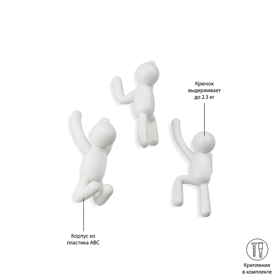 Вешалки-крючки Buddy 3 шт. белые, Umbra