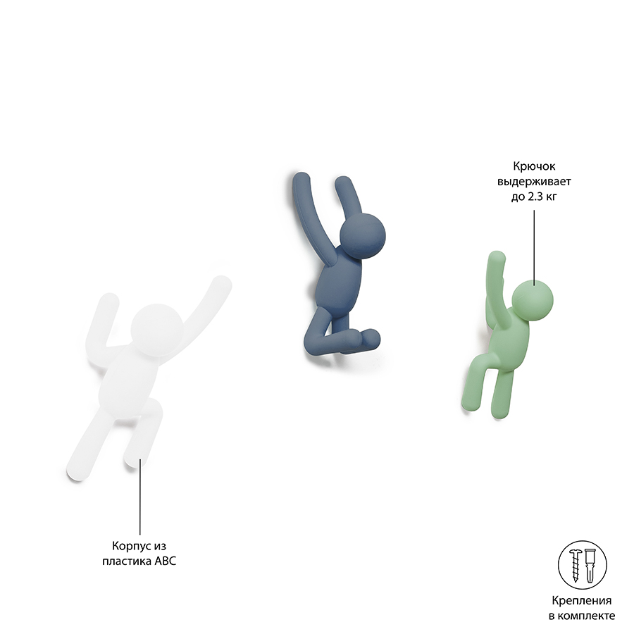 Вешалки-крючки Buddy 3 шт. разноцветные мятные, Umbra
