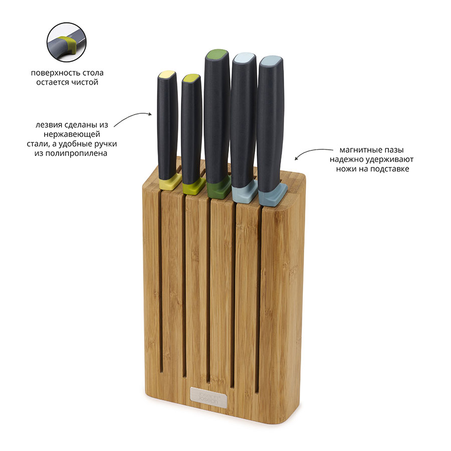 Набор ножей Elevate™ Knives Bamboo в подставке из бамбука, Joseph Joseph