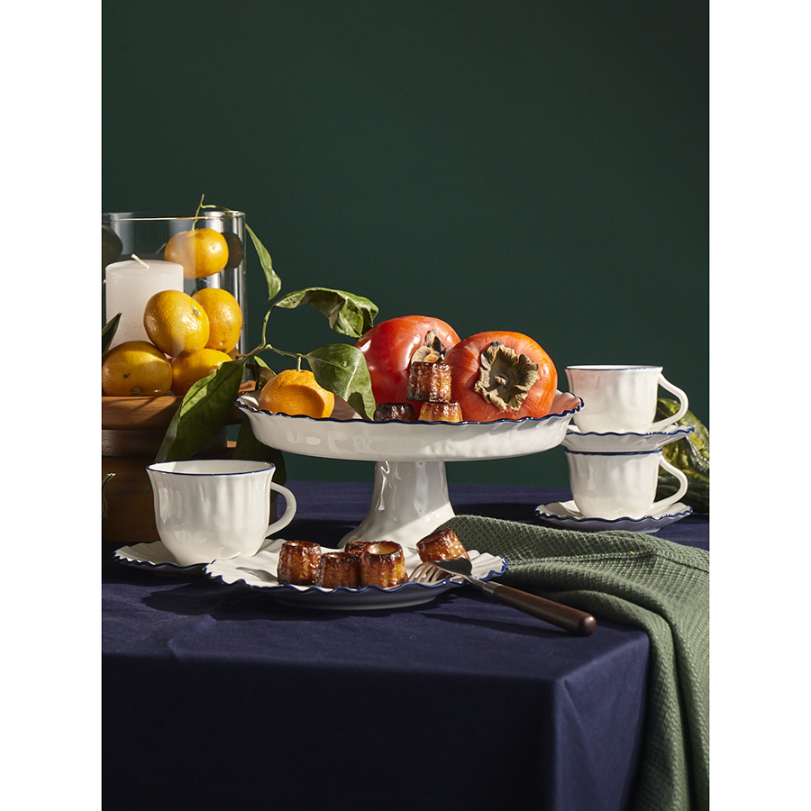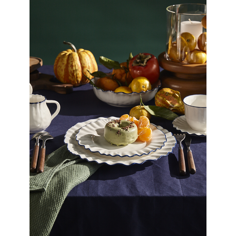 Коллекция Santorini великолепно передает атмосферу уединенного греческого острова, известного своими завораживающими видами и удивительной архитектурой. Оттенки белого и синего напоминают о бескрайнем море и уютных домиках на скалах, а необычная “мятая” фактура фарфора ассоциируется с каменистыми склонами и живописными утесами.