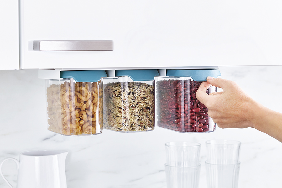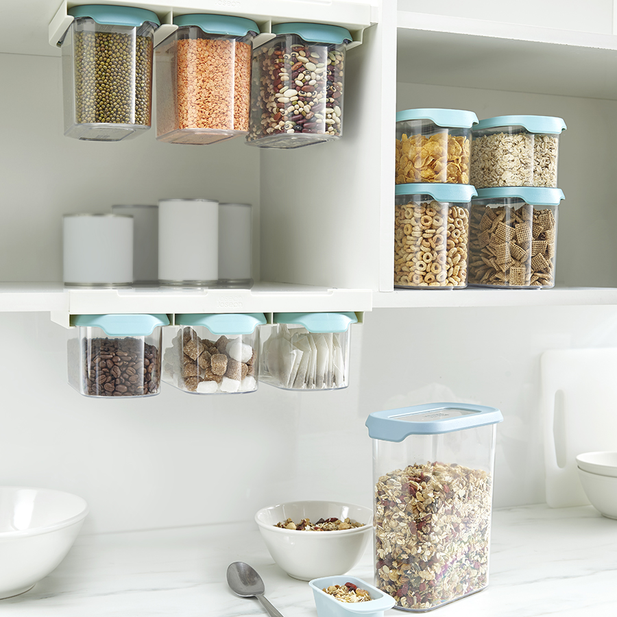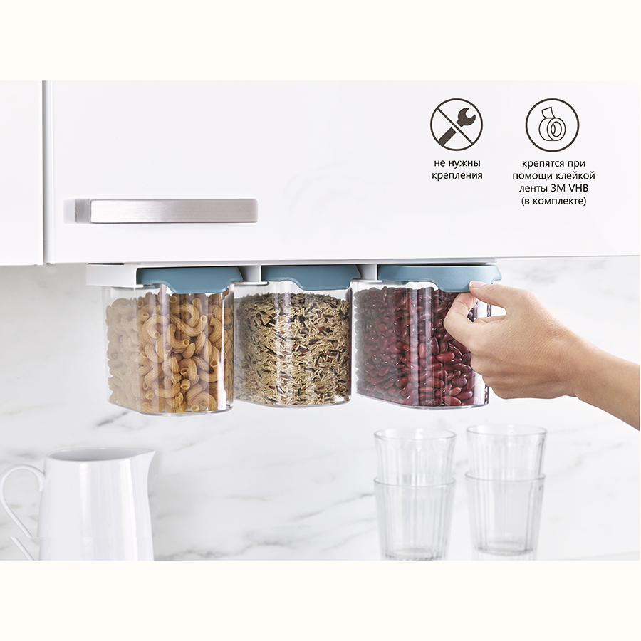 Подвесное крепление емкостей позволит освободить драгоценное место на полках в кухонных шкафчиках. Контейнеры выполнены из прозрачного пластика, благодаря чему открывается отличная видимость и доступ к хранящимся продуктам. Герметичные крышки снабжены удобными язычками для открывания емкостей.