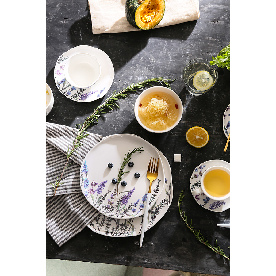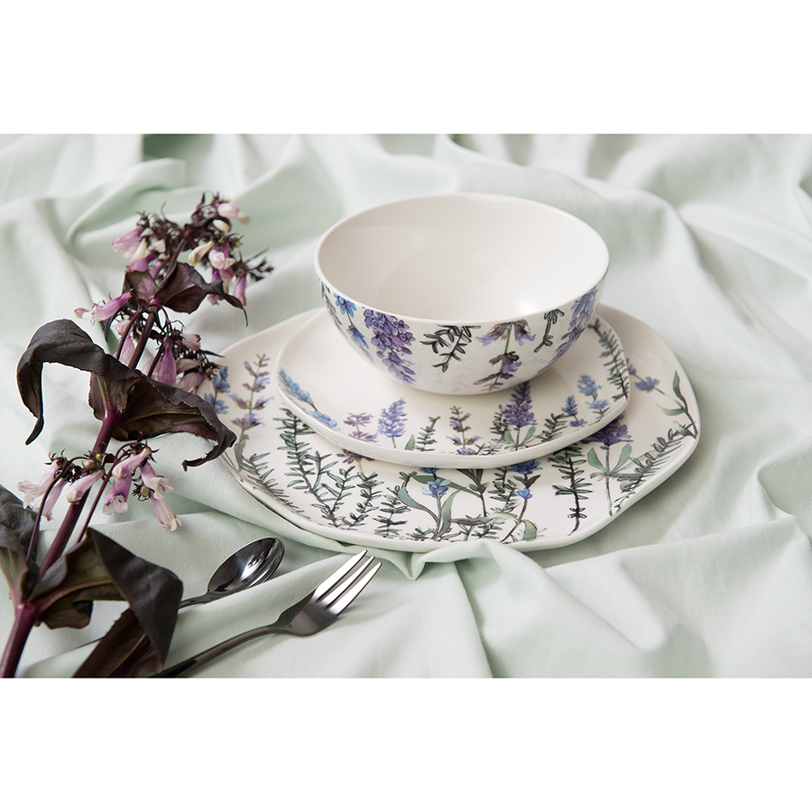 Набор Floral в нежном дизайне великолепно впишется в интерьер любой кухни. Цветущая лаванда, изображенная на белоснежной поверхности, делает посуду заметным акцентом повседневной или праздничной сервировки. Салатник фарфоровый легко моется, не впитывает загрязнения и запахи. Материал является экологичным и безопасным для здоровья.