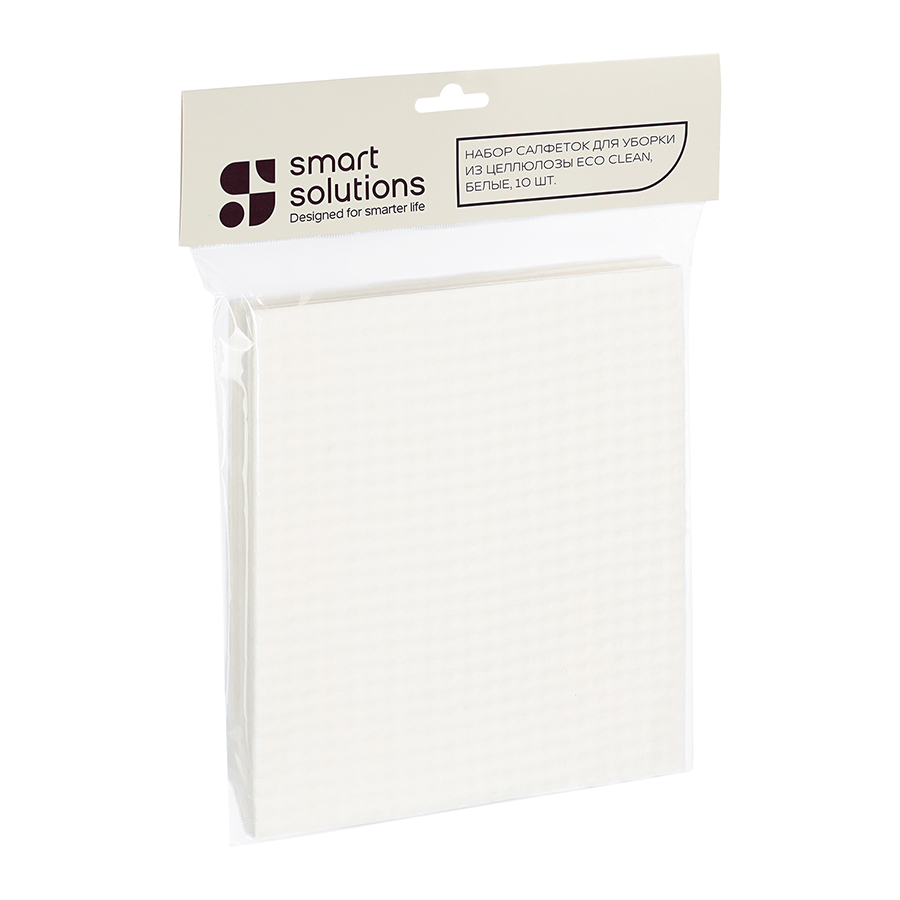 Набор салфеток для уборки из целлюлозы Eco Clean, белые, 10 шт., Smart Solutions