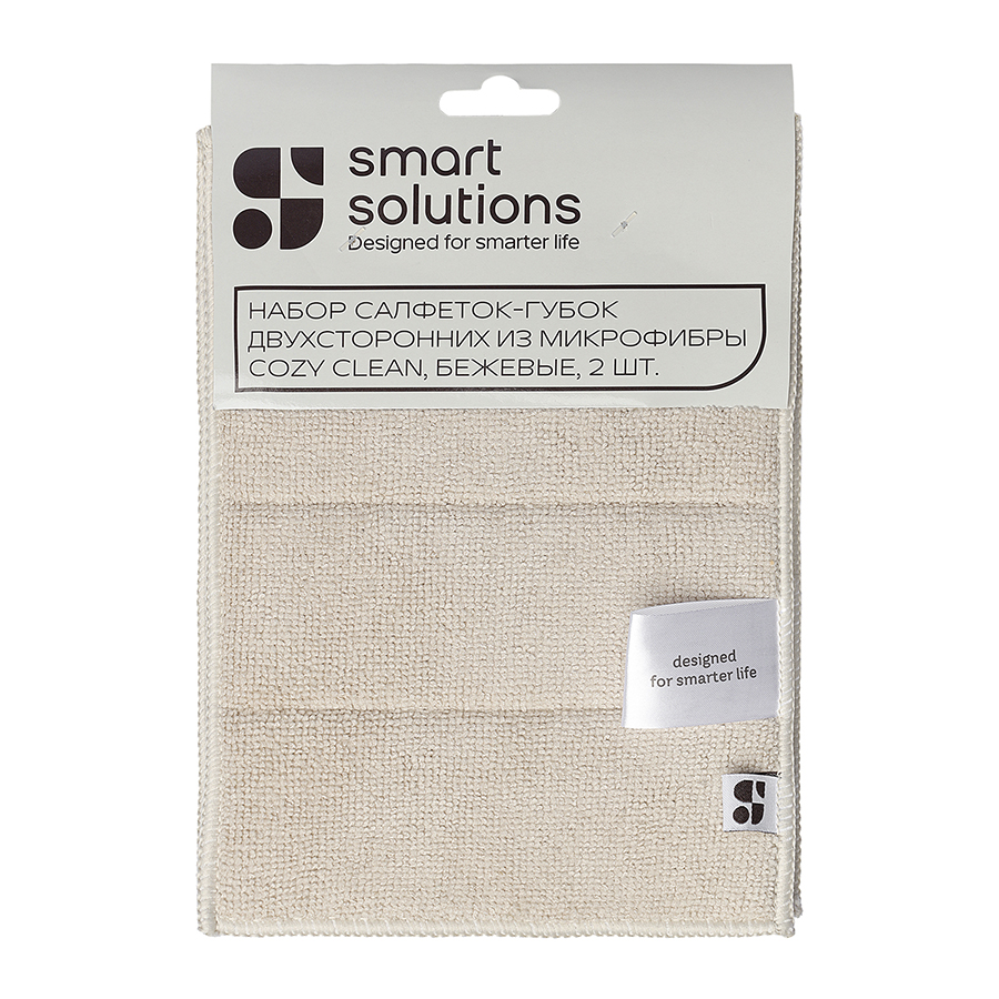 Набор салфеток-губок двухсторонних из микрофибры Cozy Clean, бежевые, 2 шт., Smart Solutions