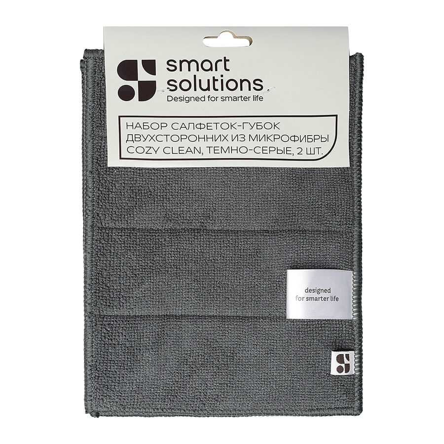 Набор салфеток-губок двухсторонних из микрофибры Cozy Clean, темно-серые, 2 шт., Smart Solutions