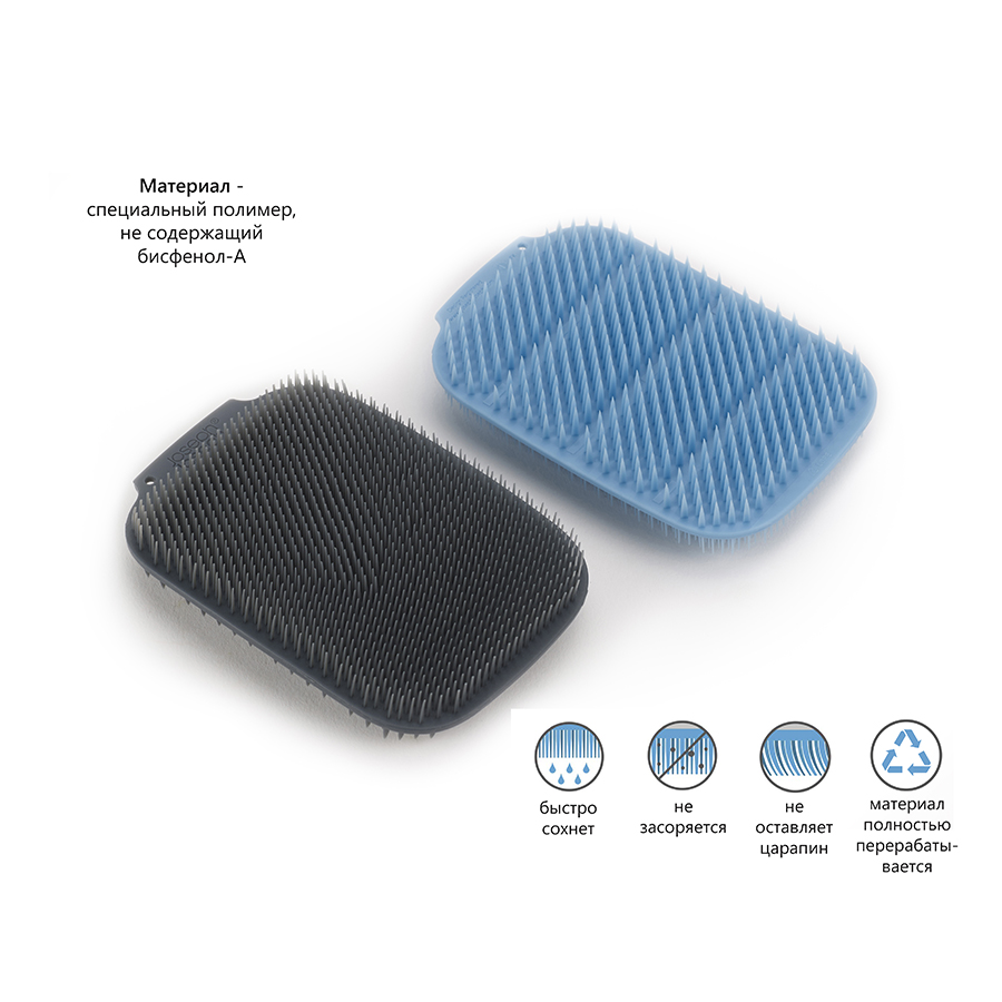 Двусторонние изделия оснащены мягкой и жесткой полимерной щетиной, которая не дает скапливаться грязи. Аксессуары не впитывают воду и быстро сохнут. Щетки эффективно очищают любые загрязнения, не теряя внешний вид в течение длительного времени.