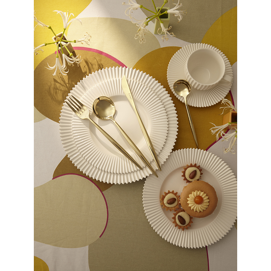 - Аксессуары золотистого цвета привносят в сервировку нотки роскоши и благородства.