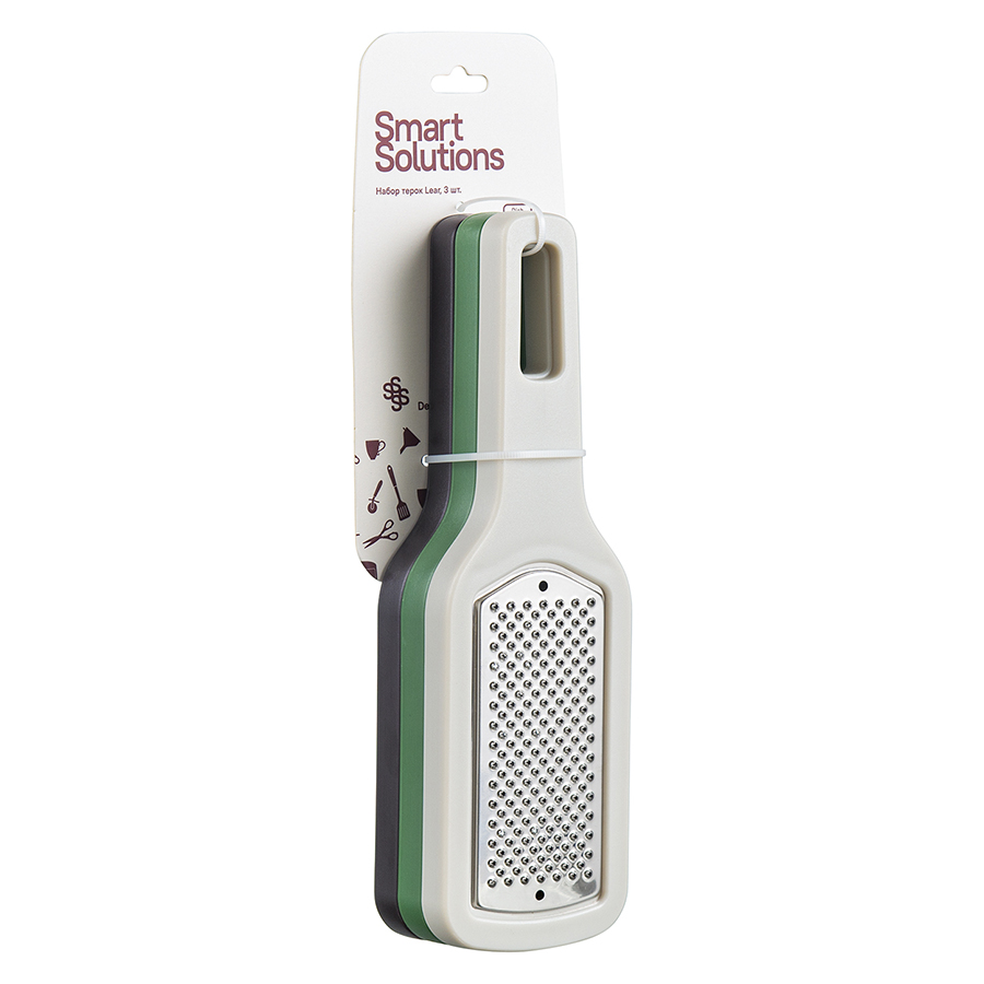 Материалы: полистирол, нержавеющая сталь. Размеры терок: 3,21х6,5х4 см. Количество предметов в наборе: 3 шт.