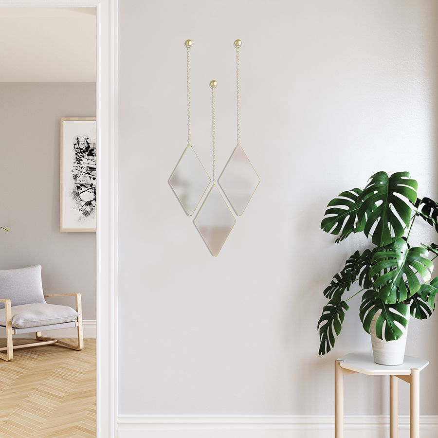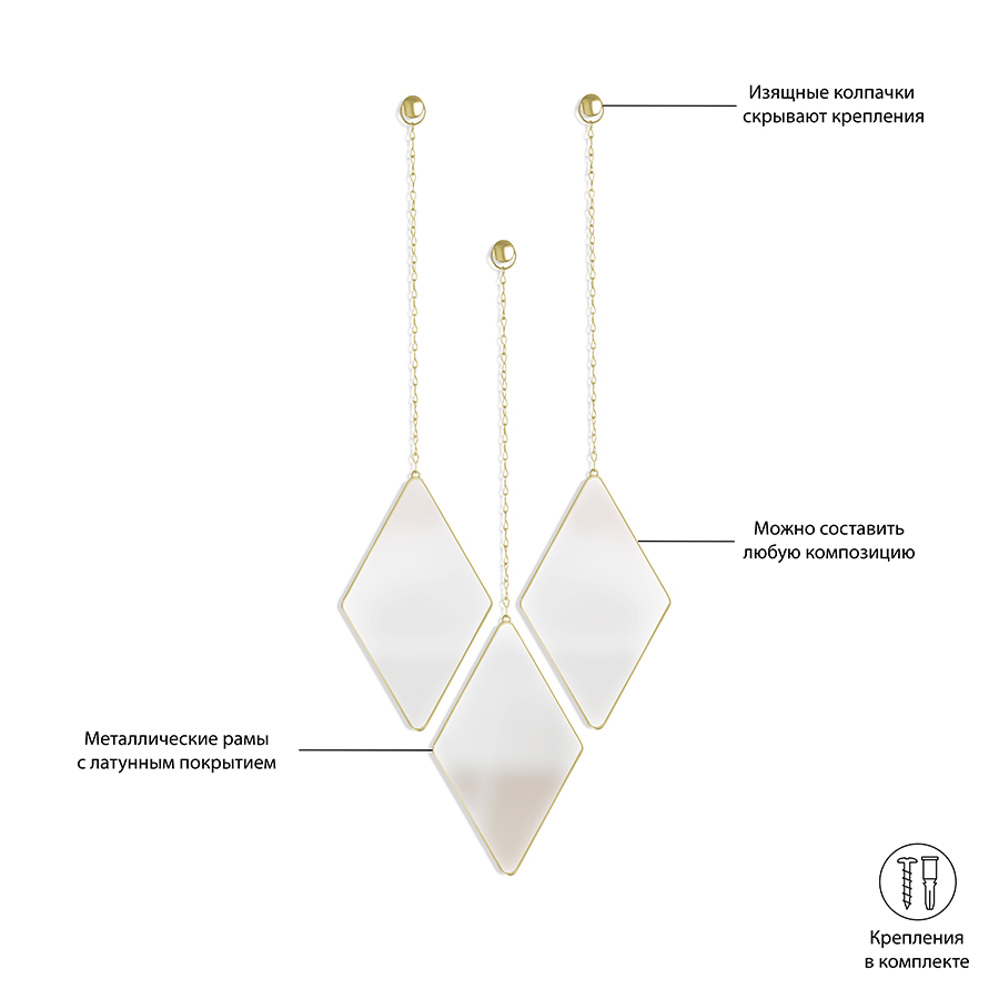 Набор из 3 подвесных зеркал Dima матовая латунь, Umbra