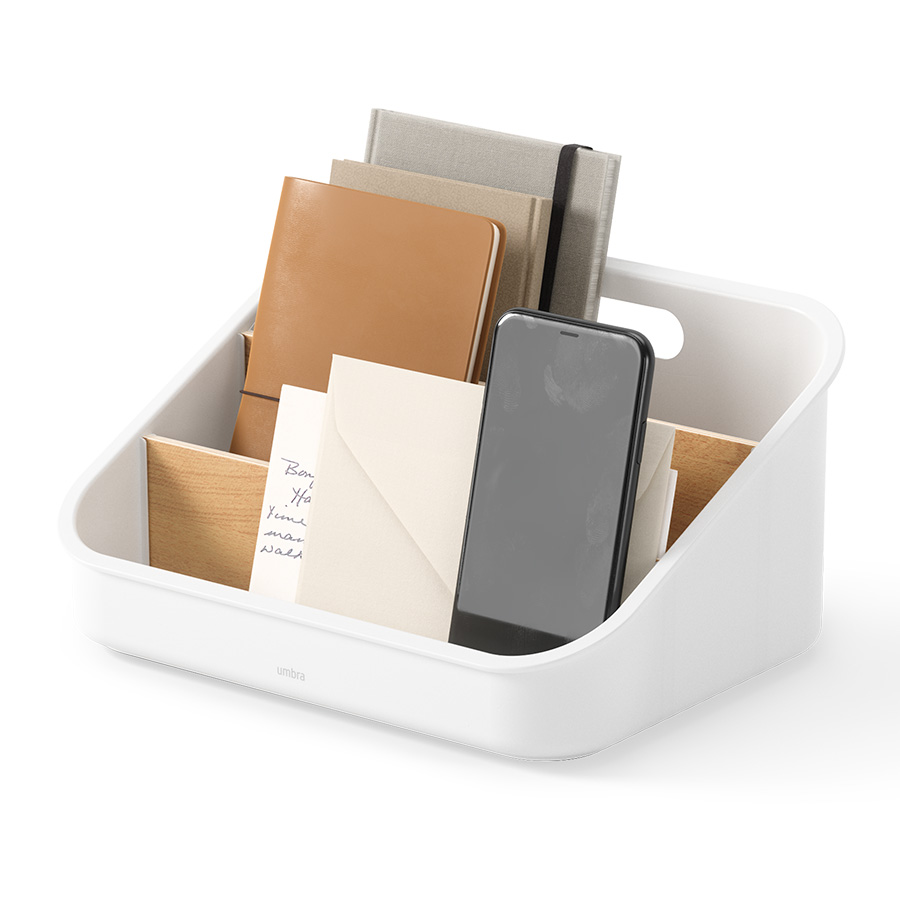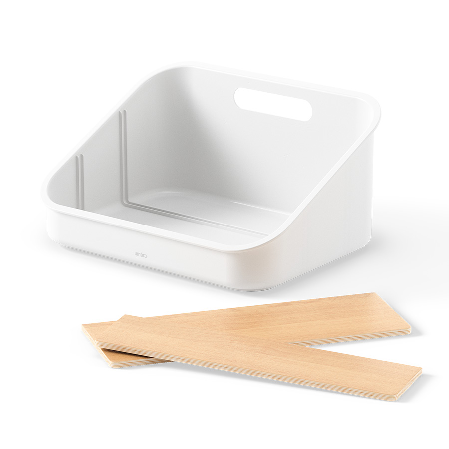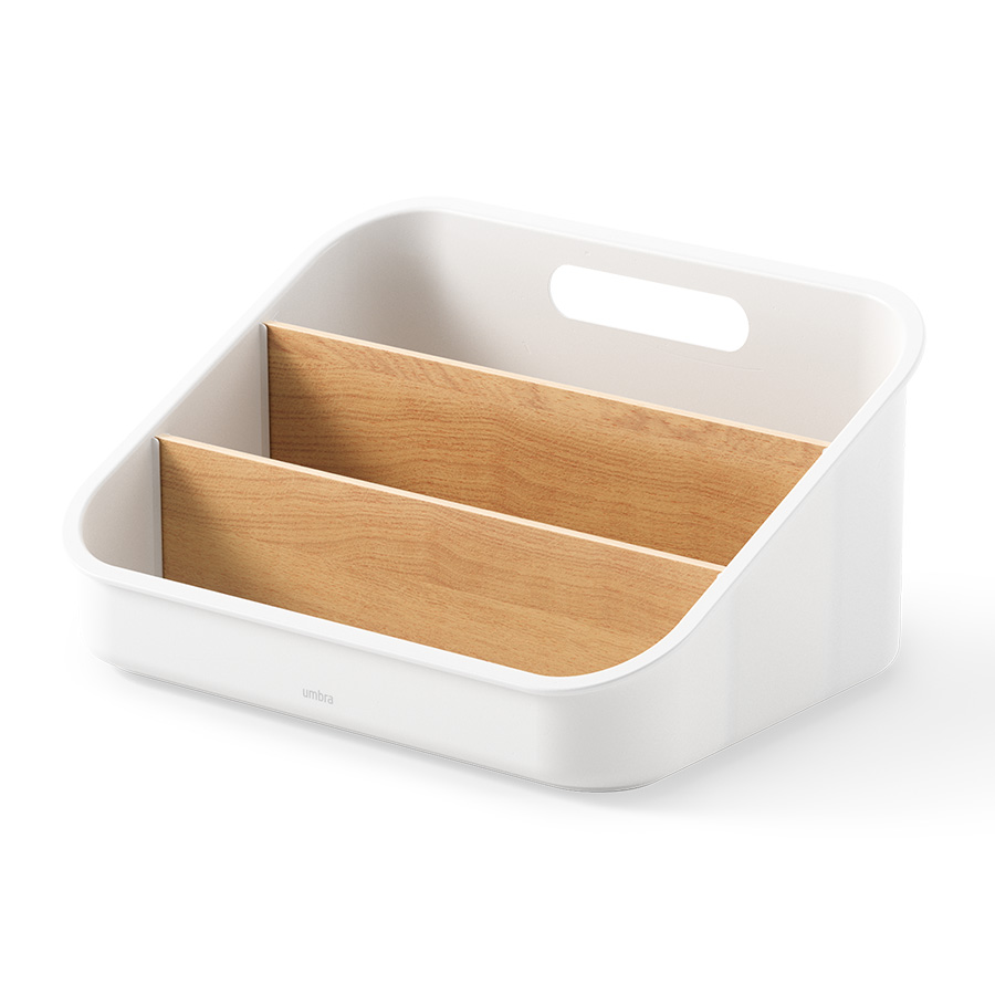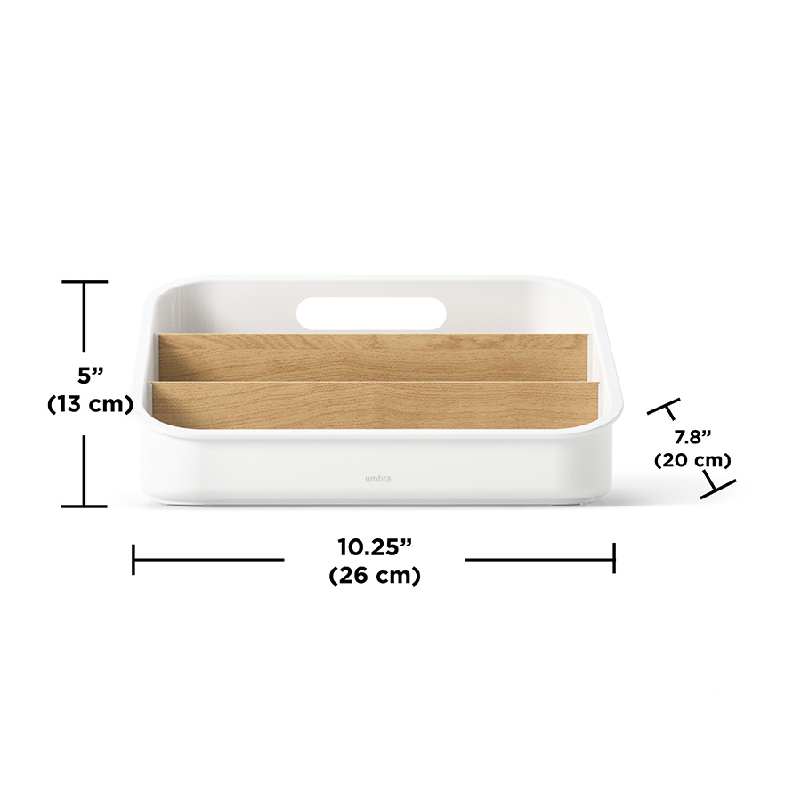 Материалы: переработанный АБС-пластик, тополь, бук, силикон. Размеры: 26х20х13 см. Цвет: белый/натуральное дерево.
