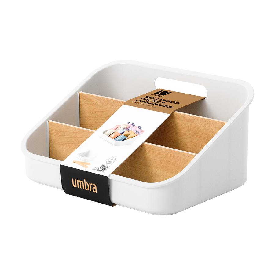 "Органайзер Bellwood поможет навести порядок на кухне и органично впишется в различные интерьерные решения. Благодаря трехуровневой конструкции и съемным перегородкам вы сможете удобно хранить все свои лакомства в одном месте – от пакетиков чая, сахара и растворимого кофе, до шоколада, снеков и много другого. Небольшие размеры позволяют размещать органайзер в любом удобном месте, в том числе на столешнице и рядом с чайником. Основание изделия выполнено из переработанного АБС-пластика, известного своей прочностью и устойчивостью к износу. Перегородки изготовлены из древесины тополя и бука. Разборная конструкция обеспечивает удобное использование и простой уход.