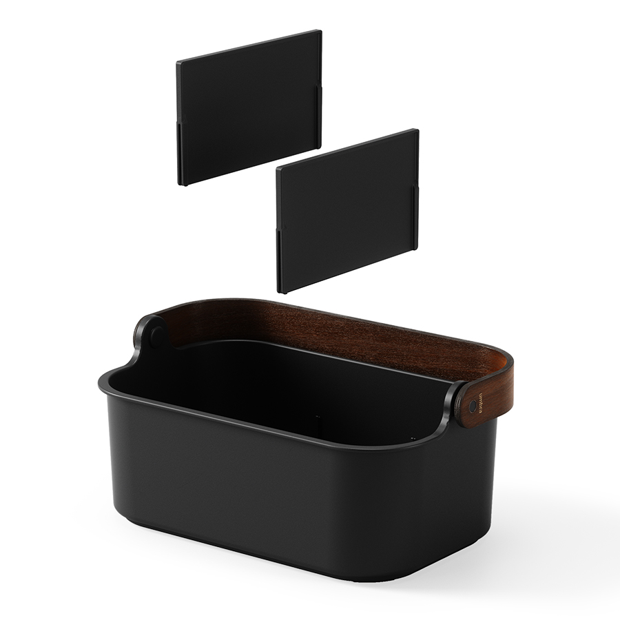 Материалы: переработанный АБС-пластик, тополь, ясень, нейлон, силикон. Размеры: 29х17х20 см. Высота без ручки: 12,7 см. Цвет: черный/орех.