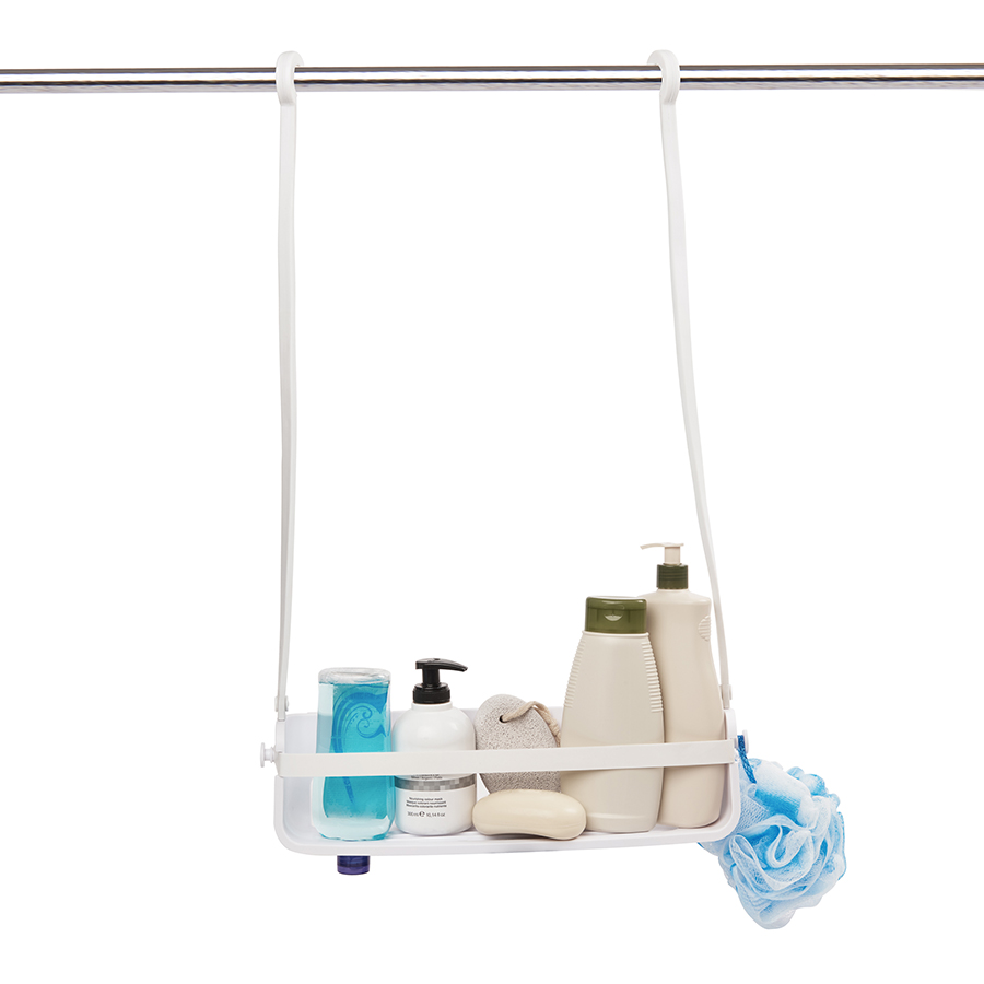Этот органайзер состоит из одной полочки и 2 крючков по бокам. Благодаря креплениям может устанавливаться на стойку для душа или дверь душевой кабины. Не подвержен ржавчине. , ,Благодаря эластичным перемычкам удержит даже самые большие бутылки с гелями и шампунями. Отверстия в полочках не дадут воде застаиваться.