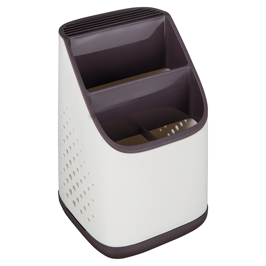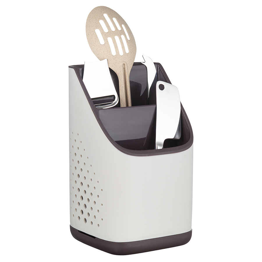 Органайзер Ronja – отличное сочетание практичности и эргономичного дизайна. Такой простой аксессуар поможет быстро навести порядок на кухне, компактно разместив в одном месте часто используемые кухонные принадлежности. Наличие нескольких уровней позволяет эффективно классифицировать и удобно хранить различные инструменты. Специальные отверстия на корпусе обеспечивают свободный доступ воздуха к внутреннему пространству, благодаря чему посуда остается сухой и не приобретает неприятный запах. Съемный поддон облегчает уход. Износостойкие материалы, такие как полипропилен и нержавеющая сталь, обеспечивают изделию долгий срок службы.