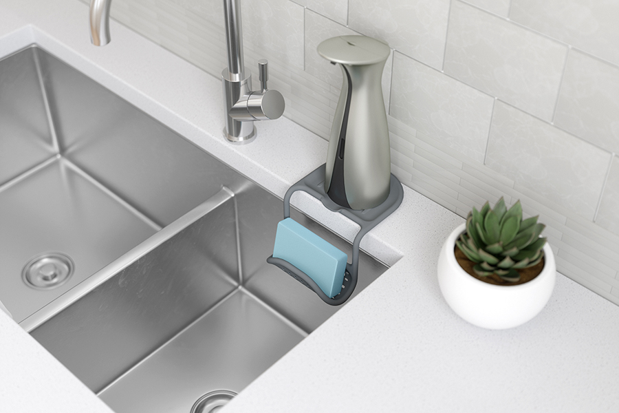 Каркас выполнен из металлической проволоки, покрытой качественным пластиком. Благодаря этому аксессуар удобно гнется и позволяет вешать органайзер на смеситель или боковую сторону раковины. Перфорация дает воздуху свободно циркулировать, поэтому губки и щётки будут сохнуть быстрее.