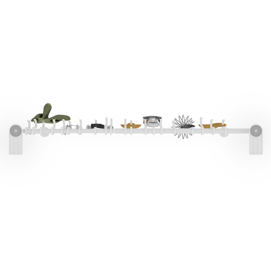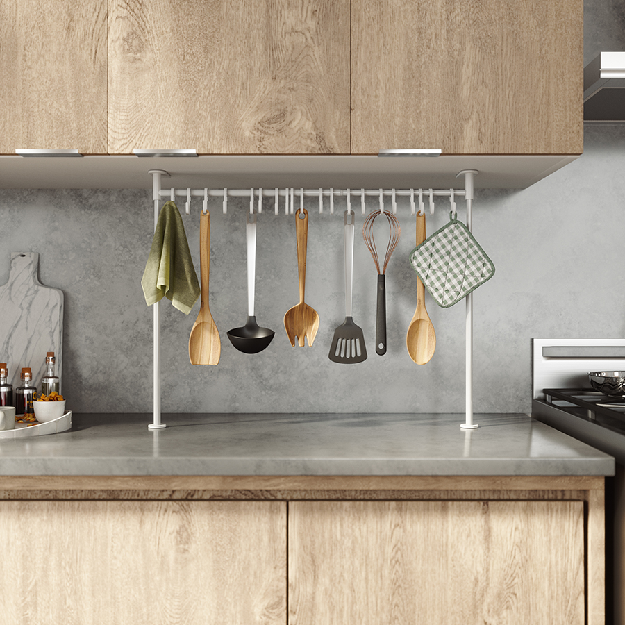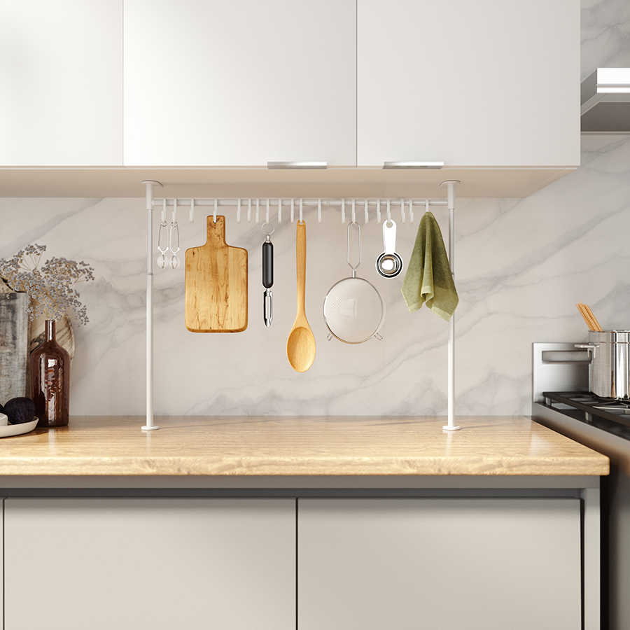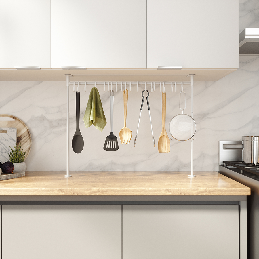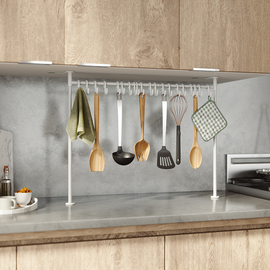 Многофункциональный органайзер оснащен двенадцатью подвесными крючками. Конструкция легко раздвигается без инструментов. Органайзер раздвигается от 38 до 50 см в высоту и от 39 до 61 см в ширину. Мягкие накладки защищают мебель от повреждений.